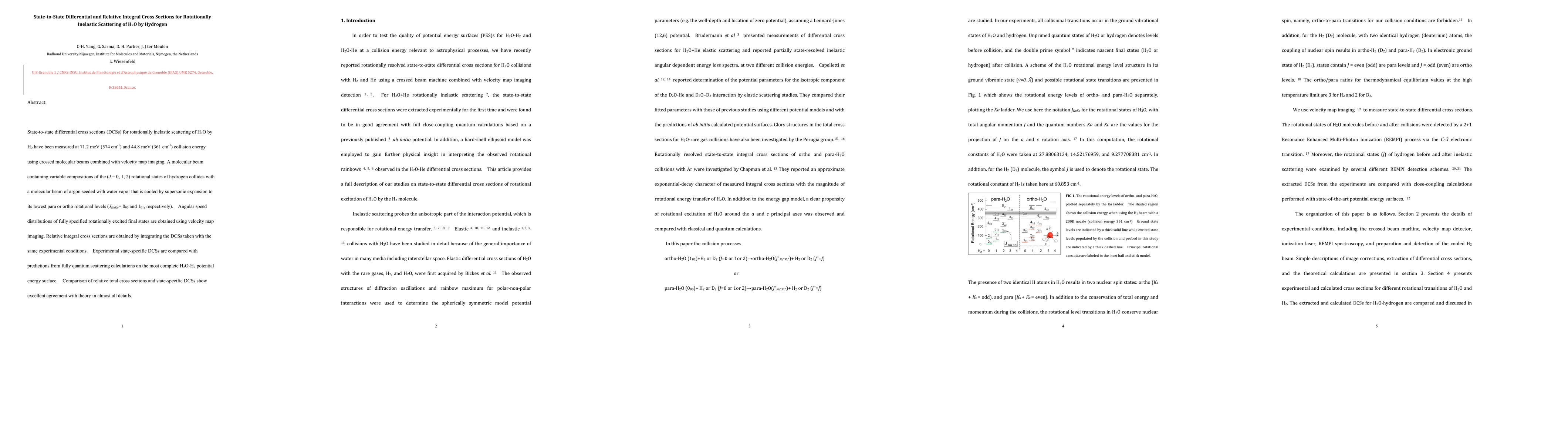 This study measures state-to-state differential cross sections for rotationally inelastic scattering of H2O by H2 at specific collision energies, using crossed molecular beams and velocity map imaging. The results are compared with quantum scattering calculations, showing excellent agreement.