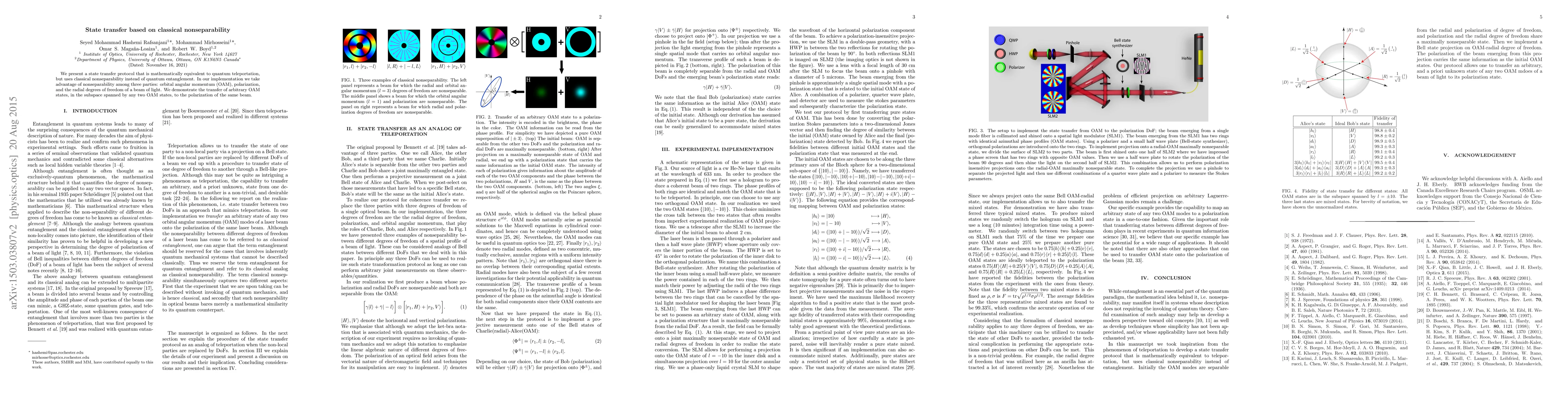 Researchers developed a state transfer protocol that uses classical nonseparability to transfer arbitrary quantum states between parties, achieving equivalent results to quantum teleportation without entanglement.