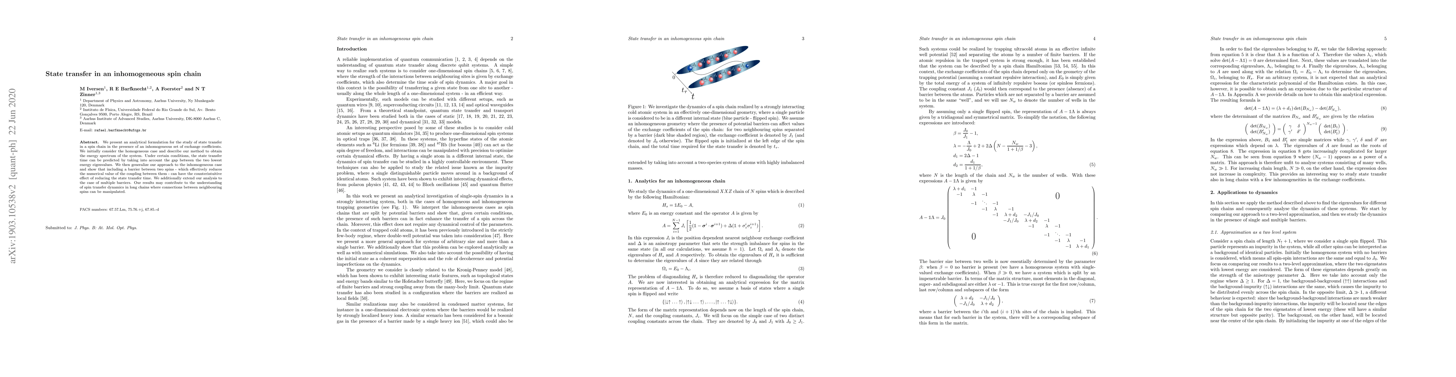 This paper studies state transfer in spin chains with an inhomogeneous set of exchange coefficients, finding that including a barrier can reduce the transfer time, and extending this to multiple barriers is also possible.