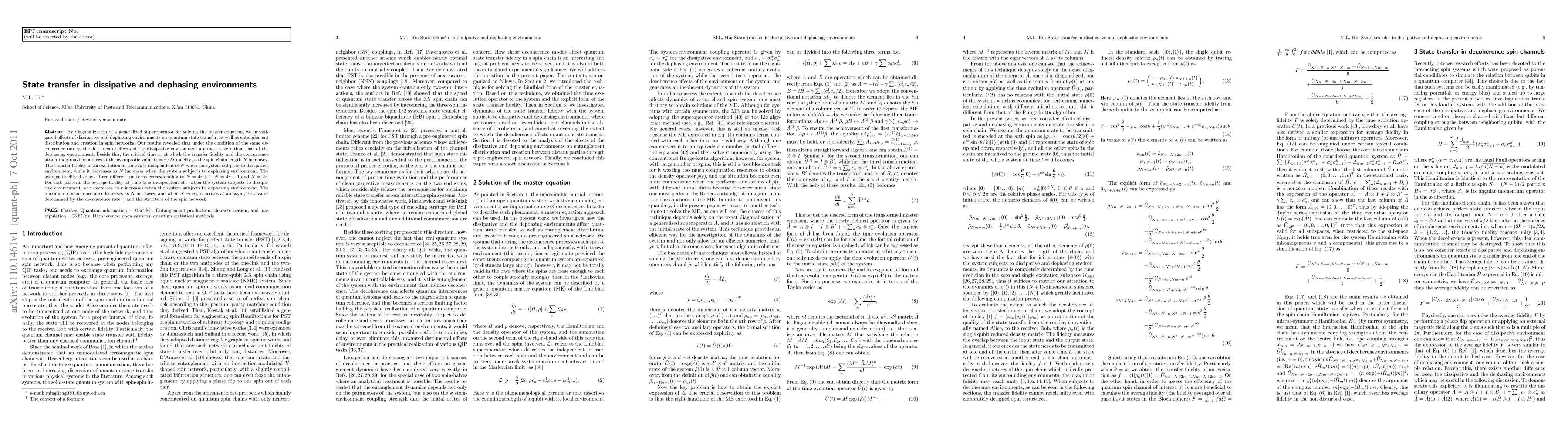 The study explores the effects of dissipative and dephasing environments on quantum state transfer in spin networks, finding that dissipative environments have more severe impacts than dephasing environments, with some patterns showing fidelity independence from chain length.