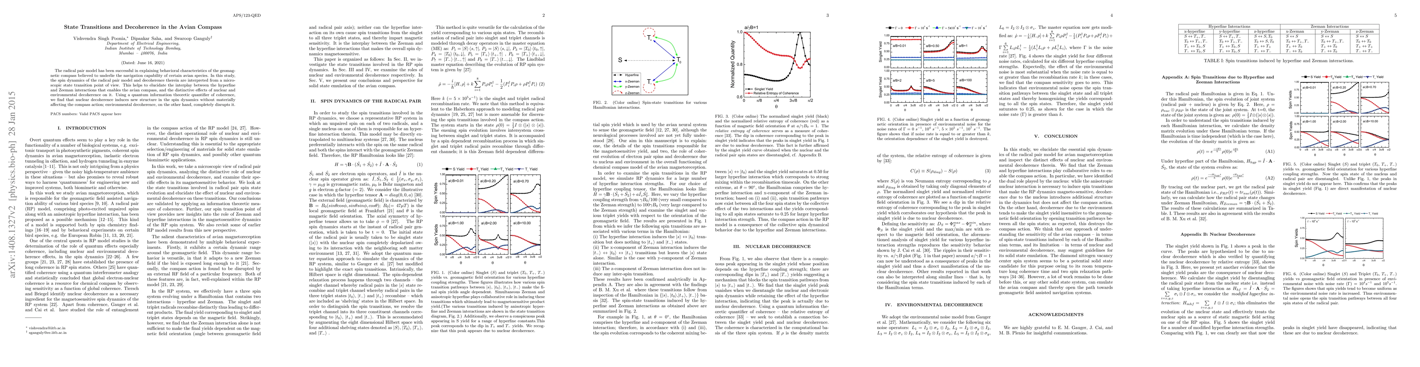 This study explores the radical pair model's spin dynamics and decoherence mechanisms in avian navigation, revealing that nuclear decoherence alters spin dynamics but does not impair compass function, while environmental decoherence fully disrupts it.