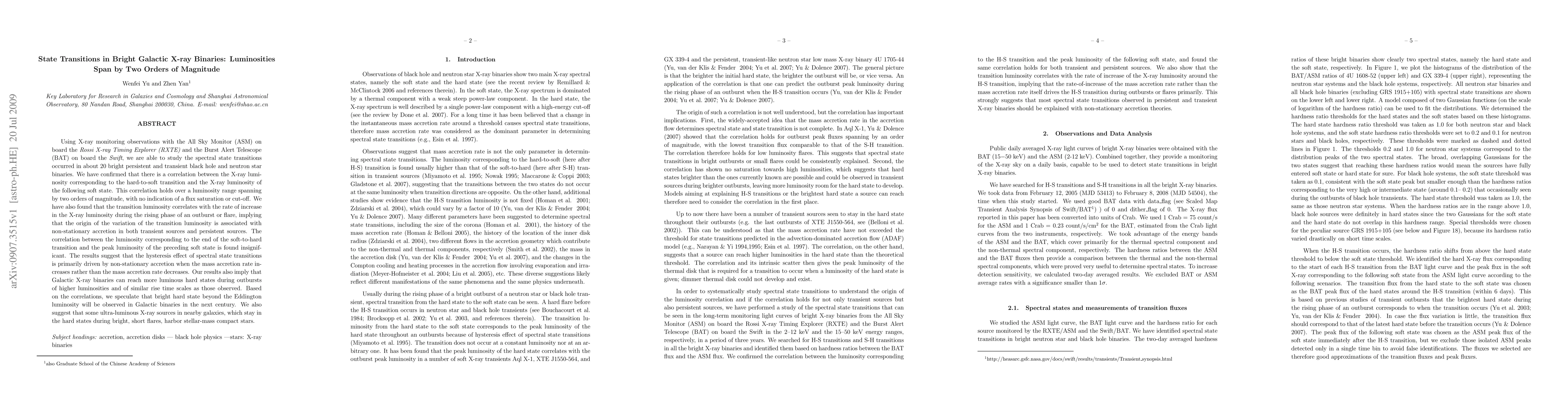 Using X-ray monitoring observations with the ASM on board the RXTE and the BAT on board the Swift, we are able to study the spectral state transitions occurred in about 20 bright persistent and transient black hole and neutron star binaries. We have confirmed that there is a correlation between the X-ray luminosity corresponding to the hard-to-soft transition and the X-ray luminosity of the following soft state. This correlation holds over a luminosity range spanning by two orders of magnitude, with no indication of a flux saturation or cut-off. We have also found that the transition luminosity correlates with the rate of increase in the X-ray luminosity during the rising phase of an outburst or flare, implying that the origin of the variation of the transition luminosity is associated with non-stationary accretion in both transient sources and persistent sources. The correlation between the luminosity corresponding to the end of the soft-to-hard transition and the peak luminosity of the preceding soft state is found insignificant. The results suggest that the hysteresis effect of spectral state transitions is primarily driven by non-stationary accretion when the mass accretion rate increases rather than the mass accretion rate decreases. Our results also imply that Galactic X-ray binaries can reach more luminous hard states during outbursts of higher luminosities and of similar rise time scales as those observed. Based on the correlations, we speculate that bright hard state beyond the Eddington luminosity will be observed in Galactic binaries in the next century. We also suggest that some ultra-luminous X-ray sources in nearby galaxies, which stay in the hard states during bright, short flares, harbor stellar-mass compact stars.