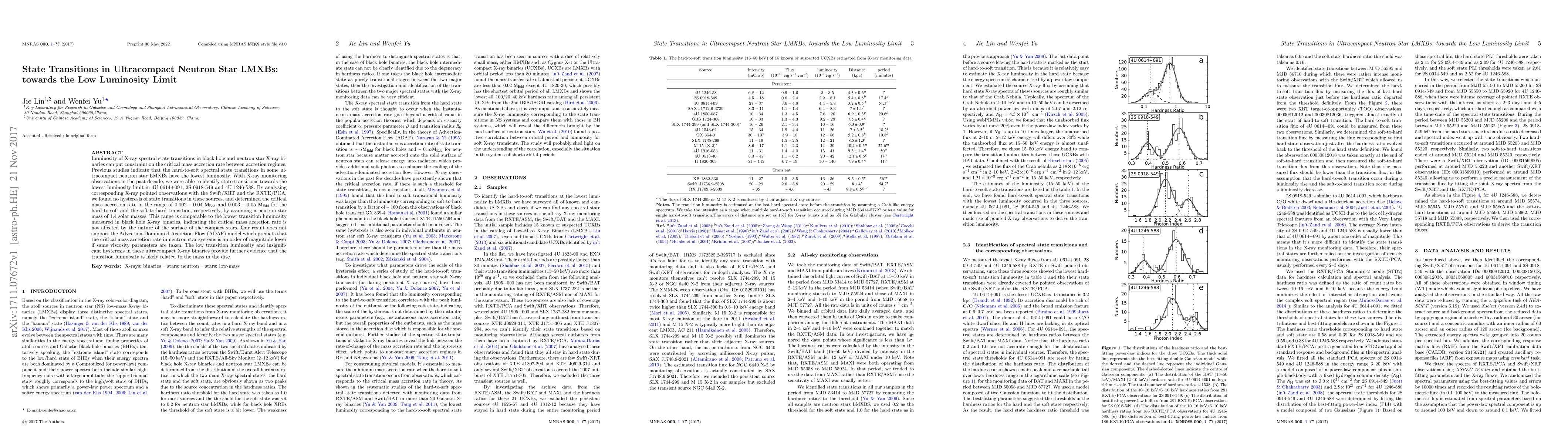 Luminosity of X-ray spectral state transitions in black hole and neutron star X-ray binaries can put constraint on the critical mass accretion rate between accretion regimes. Previous studies indicate that the hard-to-soft spectral state transitions in some ultracompact neutron star LMXBs have the lowest luminosity. With X-ray monitoring observations in the past decade, we were able to identify state transitions towards the lowest luminosity limit in 4U 0614+091, 2S 0918-549 and 4U 1246-588. By analysing corresponding X-ray pointed observations with the Swift/XRT and the RXTE/PCA, we found no hysteresis of state transitions in these sources, and determined the critical mass accretion rate in the range of 0.002 - 0.04 $\dot{\rm M}_{\rm Edd}$ and 0.003 - 0.05 $\dot{\rm M}_{\rm Edd}$ for the hard-to-soft and the soft-to-hard transition, respectively, by assuming a neutron star mass of 1.4 solar masses. This range is comparable to the lowest transition luminosity measured in black hole X-ray binaries, indicating the critical mass accretion rate is not affected by the nature of the surface of the compact stars. Our result does not support the Advection-Dominated Accretion Flow (ADAF) model which predicts that the critical mass accretion rate in neutron star systems is an order of magnitude lower if same viscosity parameters are taken. The low transition luminosity and insignificant hysteresis in these ultracompact X-ray binaries provide further evidence that the transition luminosity is likely related to the mass in the disc.