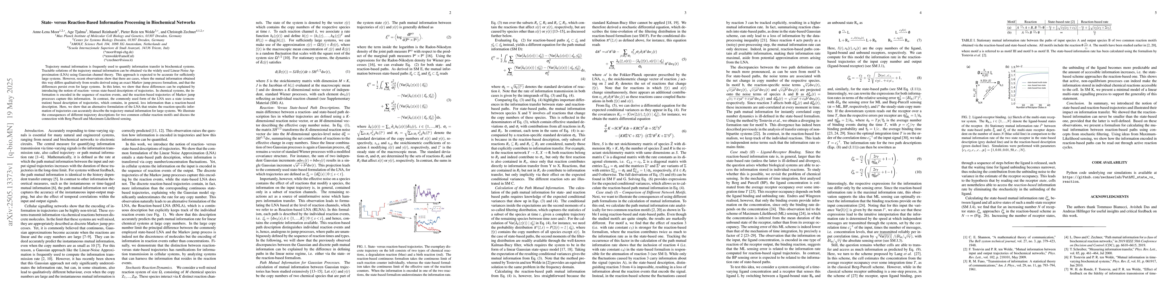 The research introduces a novel perspective on information processing in biochemical networks by distinguishing between reaction-based and state-based trajectory descriptions, offering a more accurate method for large systems.