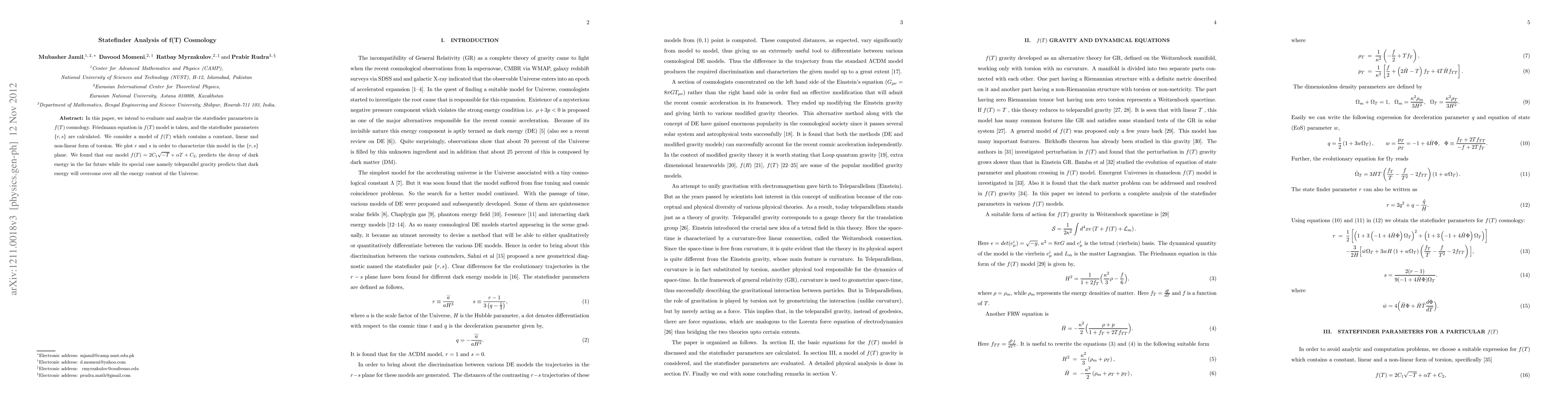 This research analyzes statefinder parameters in f(T) cosmology, deriving equations for r and s from the Friedmann equation in an f(T) model. The study considers a model with constant, linear, and non-linear torsion forms, plotting r and s to characterize the model. The findings suggest that the model predicts dark energy decay in the far future, contrasting with teleparallel gravity's prediction of dark energy overwhelming all universe energy.