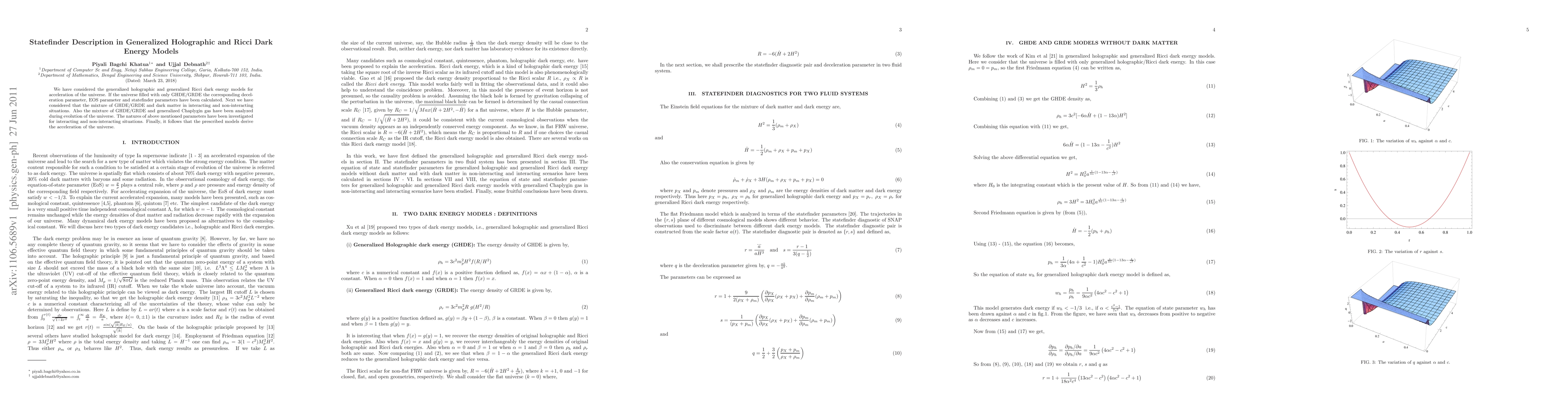 We have considered the generalized holographic and generalized Ricci dark energy models for acceleration of the universe. If the universe filled with only GHDE/GRDE the corresponding decel- eration parameter, EOS parameter and statefinder parameters have been calculated. Next we have considered that the mixture of GHDE/GRDE and dark matter in interacting and non-interacting situations. Also the mixture of GHDE/GRDE and generalized Chaplygin gas have been analyzed during evolution of the universe. The natures of above mentioned parameters have been investigated for interacting and non-interacting situations. Finally, it follows that the prescribed models derive the acceleration of the universe.