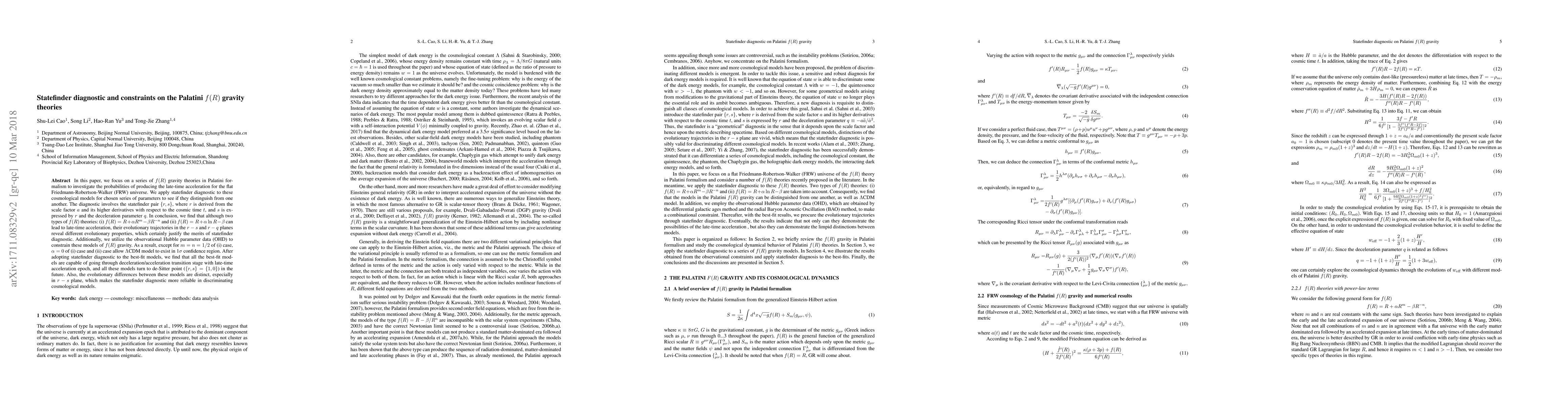 This paper examines $f(R)$ gravity theories in Palatini formalism to explore their potential for late-time acceleration in a flat FRW universe. Using statefinder diagnostics, the authors find distinct evolutionary trajectories for different $f(R)$ models, demonstrating the diagnostic's efficacy. Observational Hubble data further constrains these models, revealing that most can accommodate the $\Lambda$CDM model while showing unique evolutionary differences, especially in the $r-s$ plane.