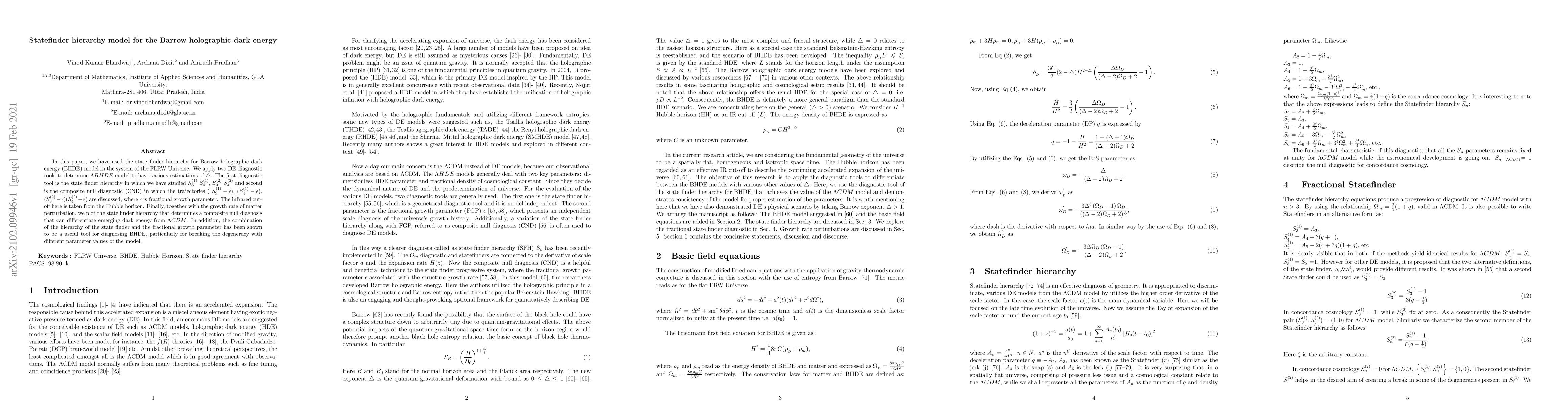 In this paper, we have used the state finder hierarchy for Barrow holographic dark energy (BHDE) model in the system of the FLRW Universe. We apply two DE diagnostic tools to determine $\Lambda BHDE$ model to have various estimations of $\triangle$. The first diagnostic tool is the state finder hierarchy in which we have studied $S^{(1)}_{3}$ $S^{(1)}_{4}$, $S^{(2)}_{3}$ $S^{(2)}_{4}$ and second is the composite null diagnostic (CND) in which the trajectories ( $S^{(1)}_{3} - \epsilon$), ($S^{(1)}_{4}-\epsilon$), ($S^{(2)}_{3}-\epsilon$)($S^{(2)}_{4}-\epsilon$) are discussed, where $\epsilon$ is fractional growth parameter. The infrared cut-off here is taken from the Hubble horizon. Finally, together with the growth rate of matter perturbation, we plot the state finder hierarchy that determines a composite null diagnosis that can differentiate emerging dark energy from $\Lambda CDM$. In addition, the combination of the hierarchy of the state finder and the fractional growth parameter has been shown to be a useful tool for diagnosing BHDE, particularly for breaking the degeneracy with different parameter values of the model.