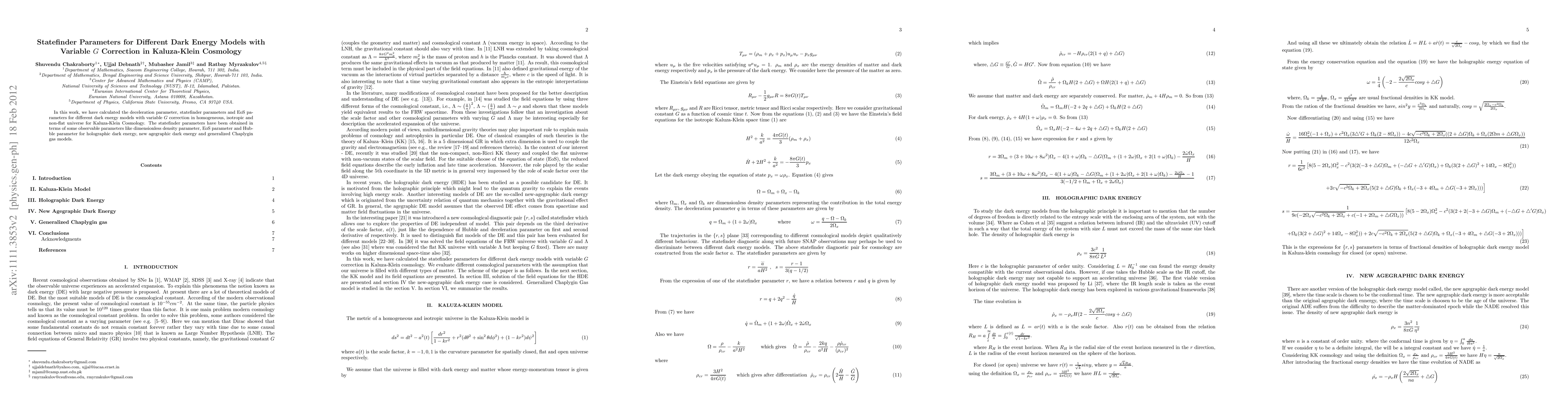 In this work, we have calculated the deceleration parameter, statefinder parameters and EoS parameters for different dark energy models with variable $G$ correction in homogeneous, isotropic and non-flat universe for Kaluza-Klein Cosmology. The statefinder parameters have been obtained in terms of some observable parameters like dimensionless density parameter, EoS parameter and Hubble parameter for holographic dark energy, new agegraphic dark energy and generalized Chaplygin gas models.