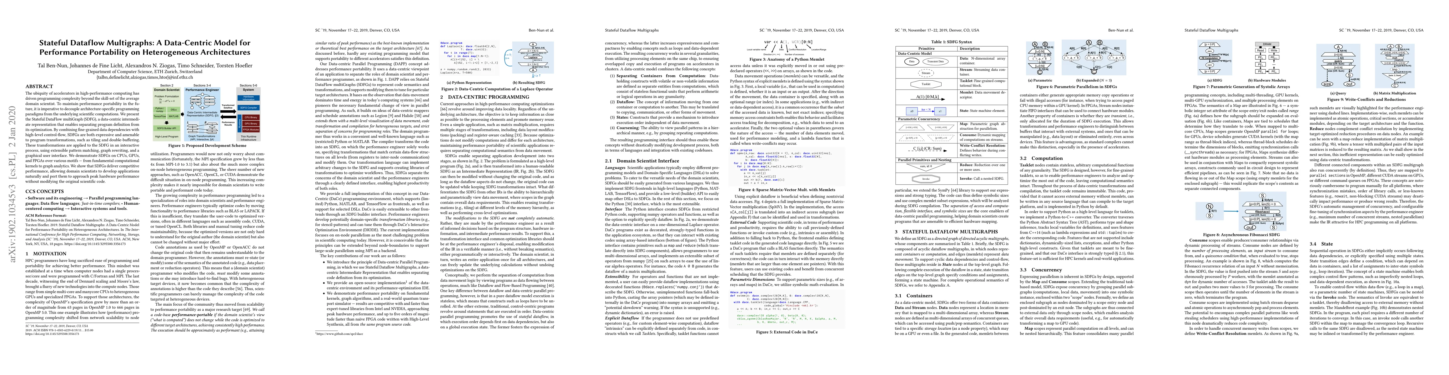 Researchers introduce Stateful DataFlow multiGraphs, a data-centric model that separates program definition from optimization for heterogeneous architectures, enabling domain scientists to develop performance-portable applications without modifying original code.