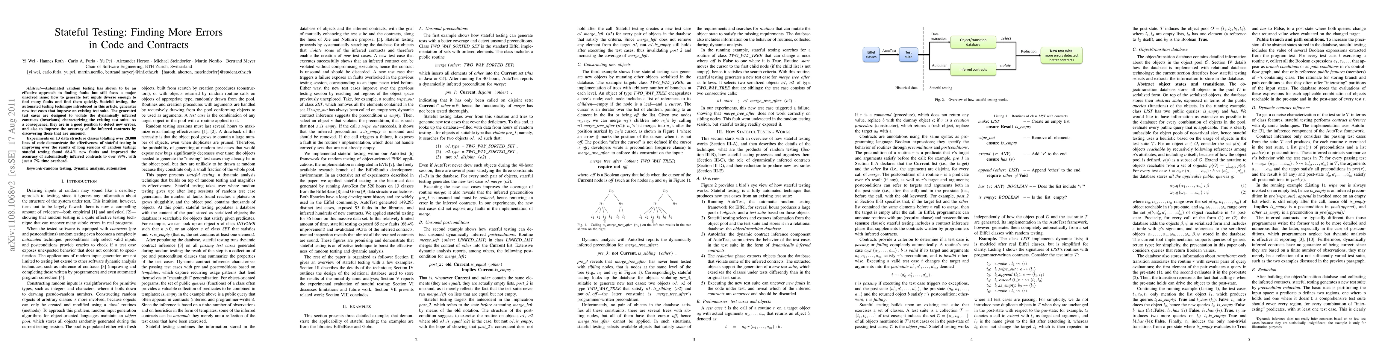 Stateful testing generates new test cases that intentionally violate inferred contracts to find new errors and improve contract accuracy. Experiments show it found 68.4% more errors than random testing, enhancing contract accuracy to over 99% with a 7% time overhead.
