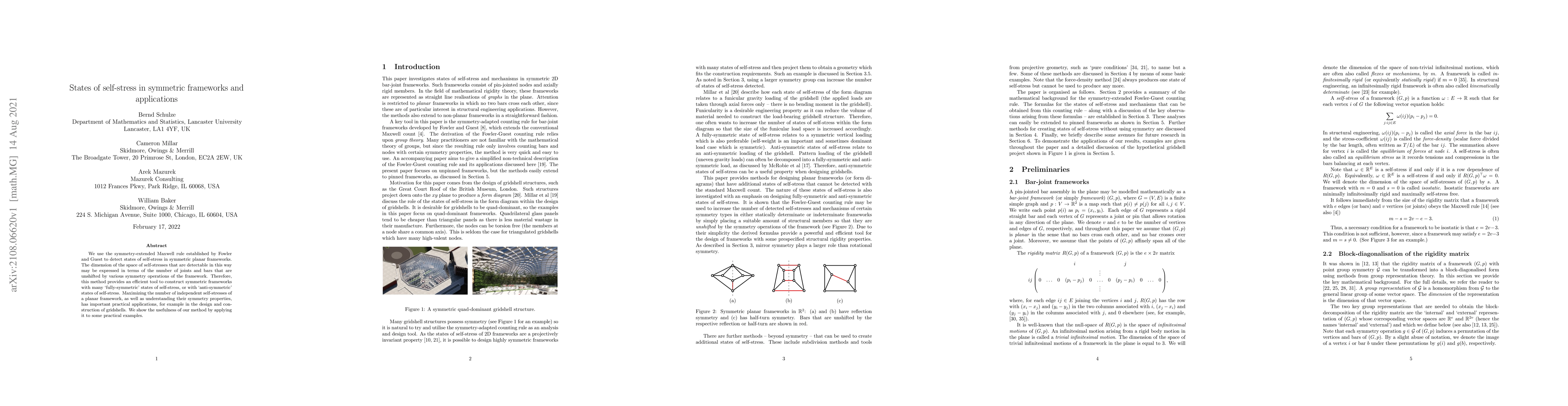 This paper develops a method to detect self-stress states in symmetric planar frameworks using symmetry-extended Maxwell rules, providing insights into maximizing the number of independent self-stresses and their symmetry properties, which is crucial for applications like gridshell design. Practical examples demonstrate the method's effectiveness.