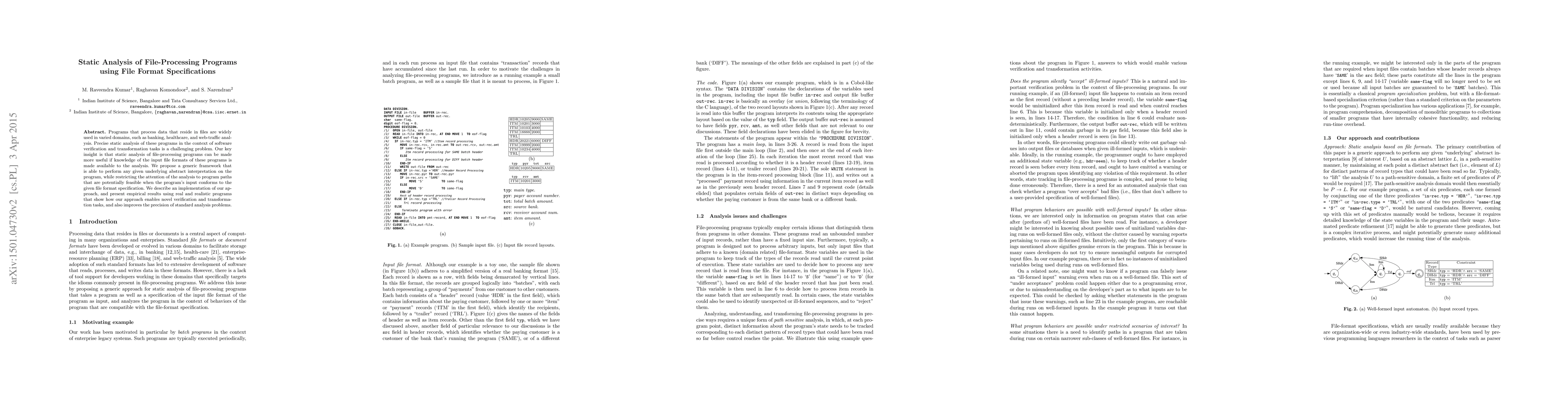 This paper proposes a framework for enhancing static analysis of file-processing programs by incorporating knowledge of input file format specifications. The approach improves precision and enables novel verification and transformation tasks through abstract interpretation focused on feasible program paths.