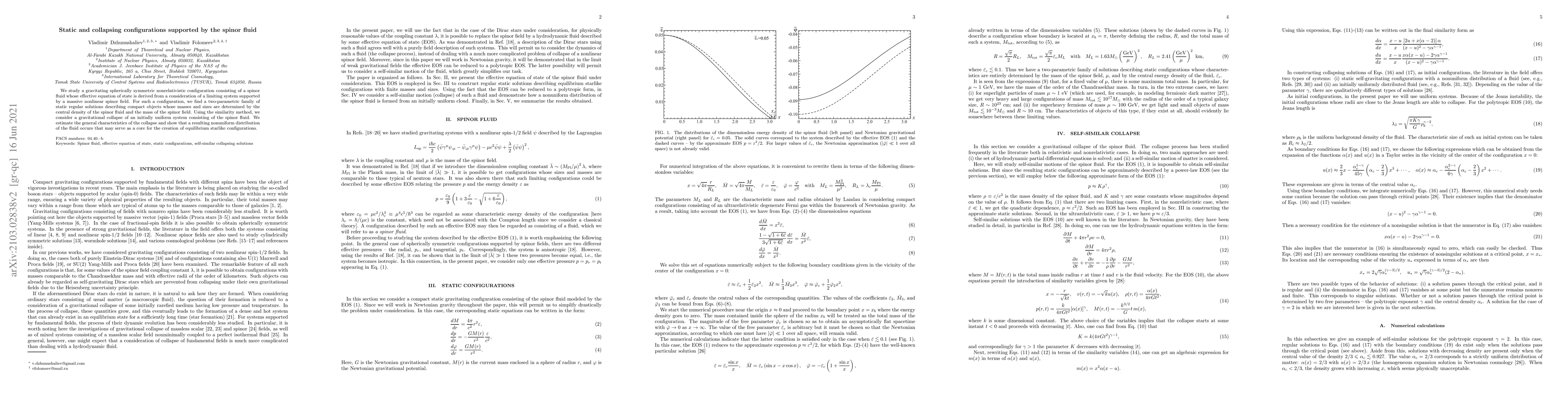 We study a gravitating spherically symmetric nonrelativistic configuration consisting of a spinor fluid whose effective equation of state is derived from a consideration of a limiting system supported by a massive nonlinear spinor field. For such a configuration, we find a two-parametric family of static regular solutions describing compact objects whose masses and sizes are determined by the central density of the spinor fluid and the mass of the spinor field. Using the similarity method, we consider a gravitational collapse of an initially uniform system consisting of the spinor fluid. We estimate the general characteristics of the collapse and show that a resulting nonuniform distribution of the fluid occurs that may serve as a core for the creation of equilibrium starlike configurations.