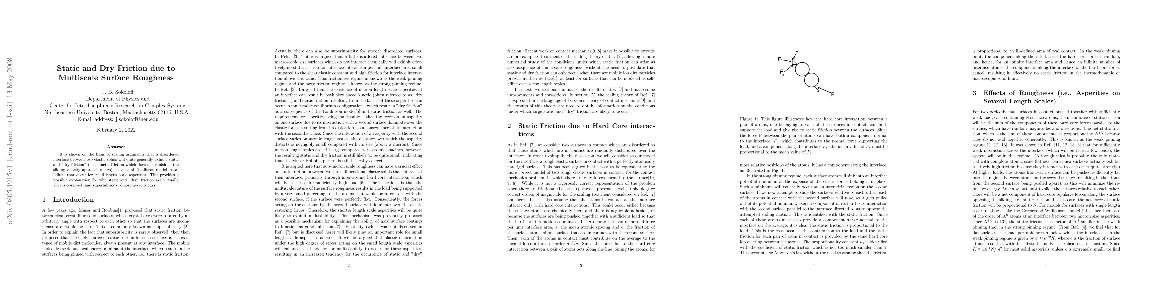 This paper explains that static and dry friction are commonly observed due to instabilities in the Tomlinson model caused by small-scale surface roughness on disordered interfaces between elastic solids, offering a rationale for the rarity of superlubricity.