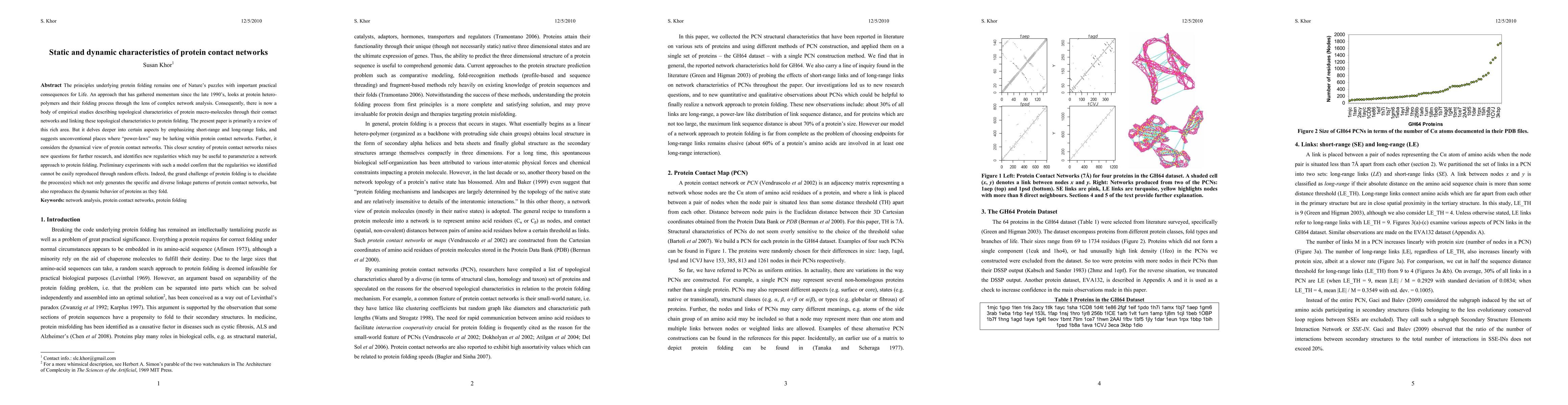 This paper reviews the topological characteristics of protein contact networks and their relation to protein folding, highlighting both static and dynamic features. It identifies unconventional power-law patterns and suggests new regularities that may aid in modeling protein folding, with preliminary experiments indicating these patterns are not random.