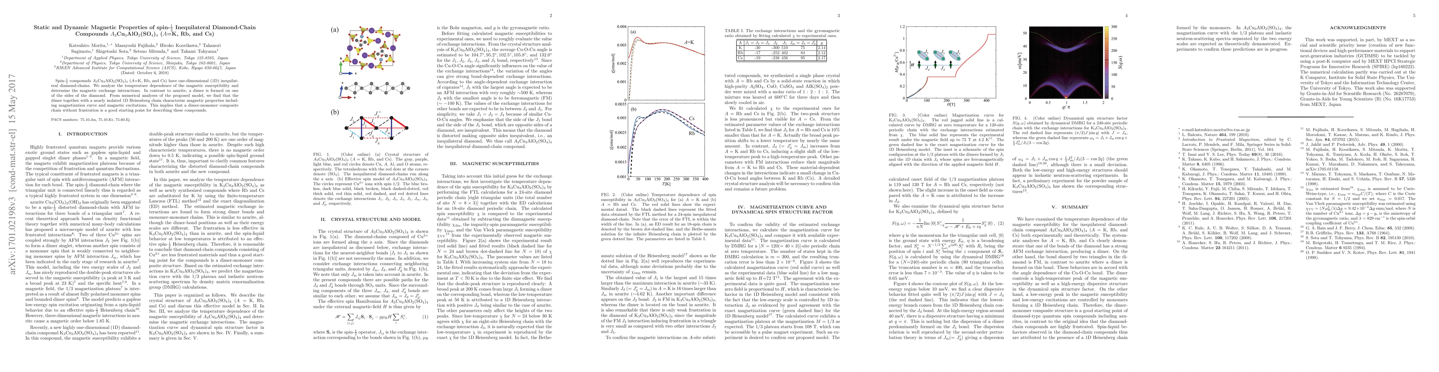 Spin-1/2 compounds A3Cu3AlO2(SO4)4 (A=K, Rb, and Cs) have one-dimensional (1D) inequilateral diamond chains. We analyze the temperature dependence of the magnetic susceptibility and determine the magnetic exchange interactions. In contrast to the azurite, a dimer is formed on one of the sides of the diamond. From numerical analyses of the proposed model, we find that the dimer together with a nearly isolated 1D Heisenberg chain characterizes magnetic properties including magnetization curve and magnetic excitations. This implies that a dimer-monomer composite chain without frustration is a good starting point for describing these compounds.