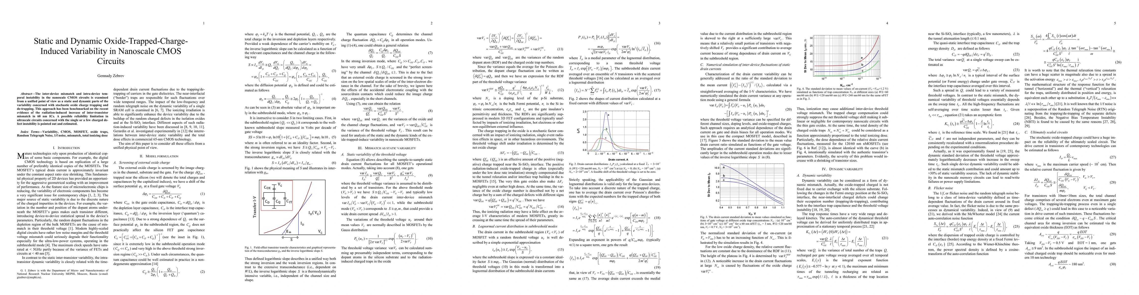 The inter-device mismatch and intra-device temporal instability in the nanoscale CMOS circuits is examined from a unified point of view as a static and dynamic parts of the variability con-cerned with stochastic oxide charge trapping and de-trapping. This approach has been benchmarked on the recent evidence of the radiation-induced increase of inter-transistor mismatch in 60 nm ICs. A possible reliability limitation in ultrascale circuits concerned with the single or a few charged defect instability is pointed out and estimated.