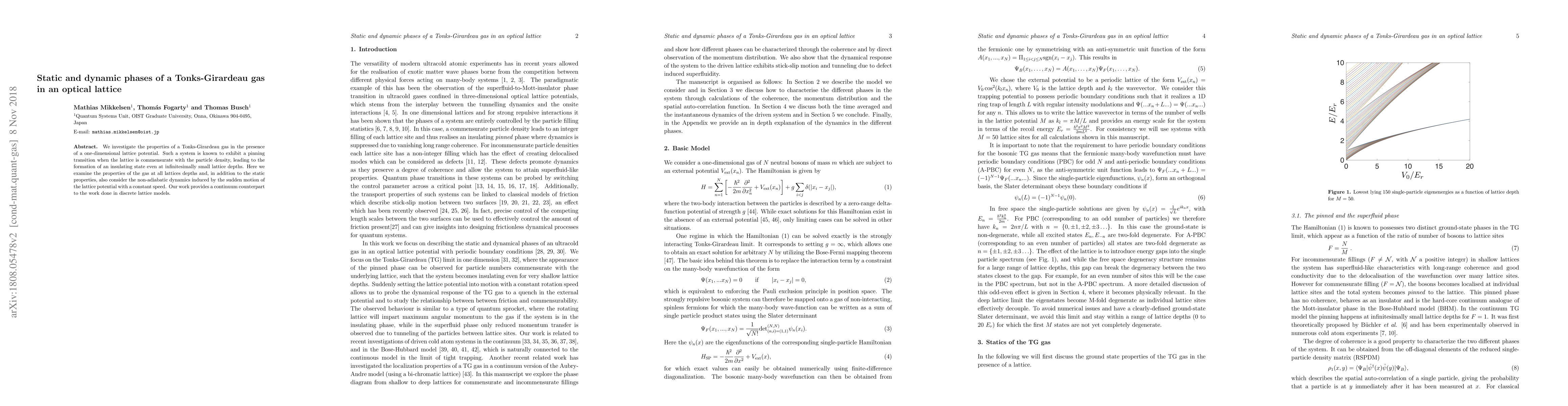 We investigate the properties of a Tonks-Girardeau gas in the presence of a one-dimensional lattice potential. Such a system is known to exhibit a pinning transition when the lattice is commensurate with the particle density, leading to the formation of an insulating state even at infinitesimally small lattice depths. Here we examine the properties of the gas at all lattices depths and, in addition to the static properties, also consider the non-adiabatic dynamics induced by the sudden motion of the lattice potential with a constant speed. Our work provides a continuum counterpart to the work done in discrete lattice models.