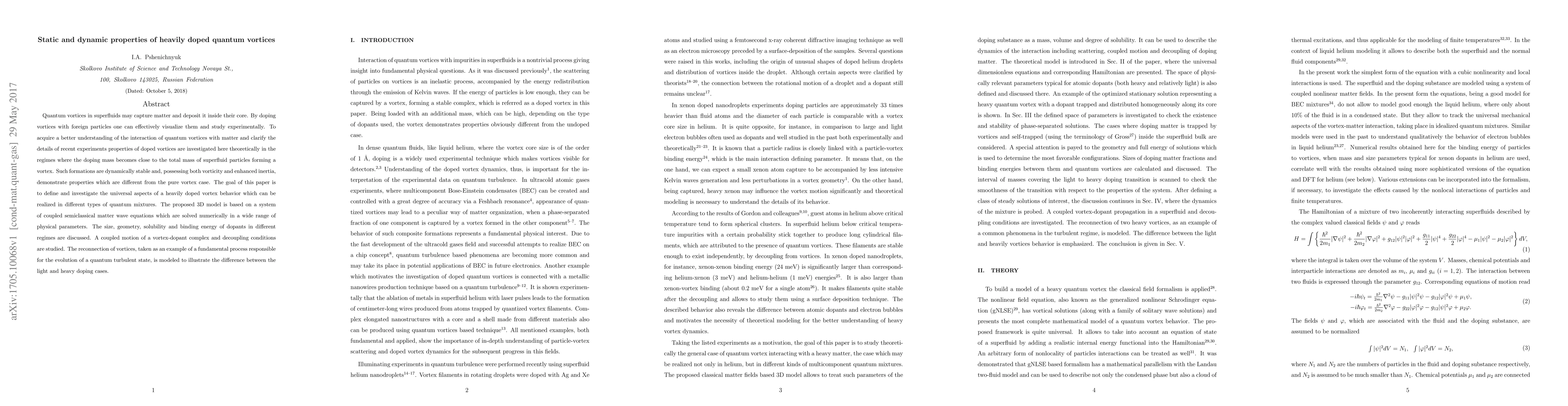 Quantum vortices in superfluids may capture matter and deposit it inside their core. By doping vortices with foreign particles one can effectively visualize them and study experimentally. To acquire a better understanding of the interaction of quantum vortices with matter and clarify the details of recent experiments properties of doped vortices are investigated here theoretically in the regimes where the doping mass becomes close to the total mass of superfluid particles forming a vortex. Such formations are dynamically stable and, possessing both vorticity and enhanced inertia, demonstrate properties which are different from the pure vortex case. The goal of this paper is to define and investigate the universal aspects of a heavily doped vortex behavior which can be realized in different types of quantum mixtures. The proposed 3D model is based on a system of coupled semiclassical matter wave equations which are solved numerically in a wide range of physical parameters. The size, geometry, solubility and binding energy of dopants in different regimes are discussed. A coupled motion of a vortex-dopant complex and decoupling conditions are studied. The reconnection of vortices, taken as an example of a fundamental process responsible for the evolution of a quantum turbulent state, is modeled to illustrate the difference between the light and heavy doping cases.