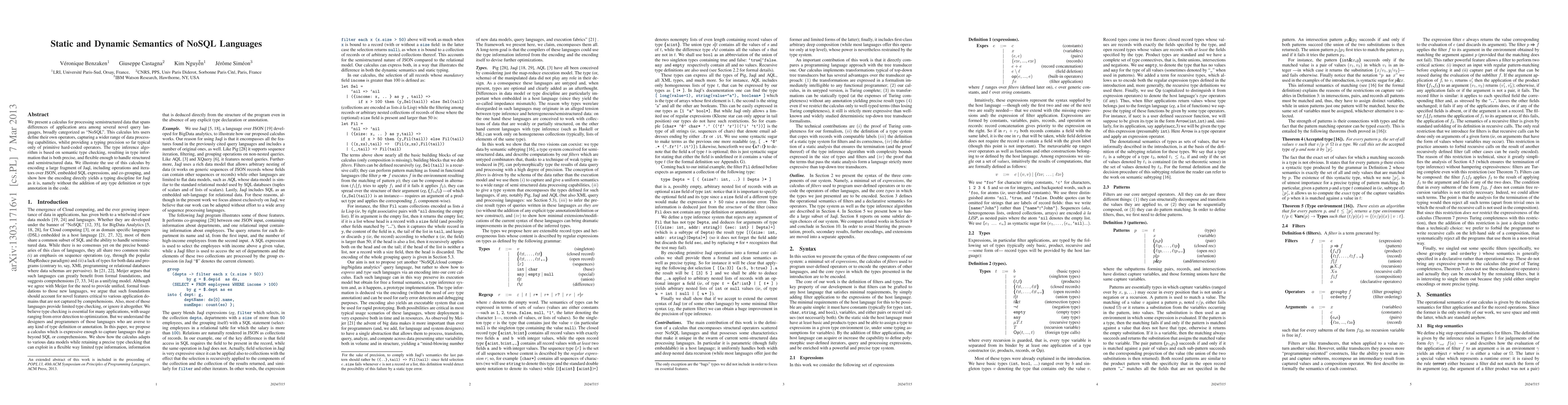 A calculus for NoSQL languages provides precise typing for semistructured data, enabling users to define custom operators and providing flexible type information.