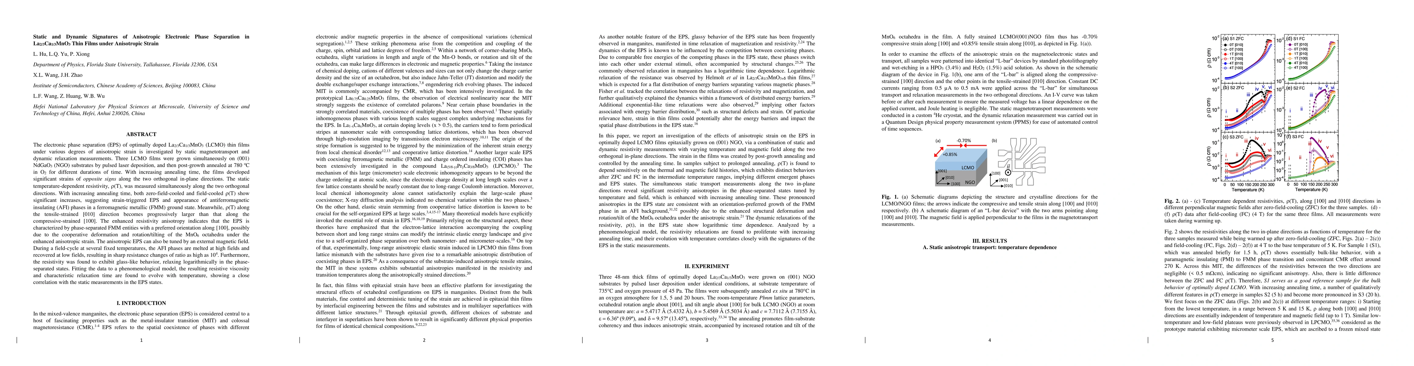 This paper investigates the electronic phase separation in La2/3Ca1/3MnO3 thin films under anisotropic strain, revealing that strain-induced separation leads to antiferromagnetic insulating phases within a ferromagnetic metallic matrix. The resistivity anisotropy and dynamic relaxation measurements show that the phase separation can be tuned by external magnetic fields, with resistance changes up to a factor of 104.