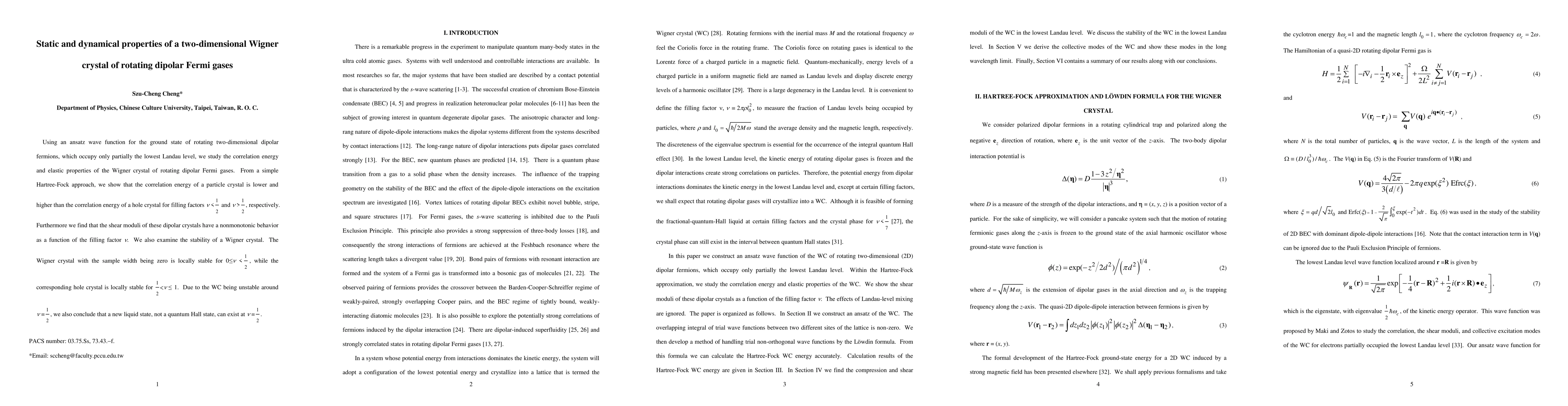This paper investigates the static and dynamical properties of a two-dimensional Wigner crystal formed by rotating dipolar Fermi gases. It finds that the correlation energy and shear moduli exhibit nonmonotonic behavior with filling factor, revealing local stability for Wigner crystals in specific ranges and suggesting the existence of a new liquid state at v=1/2.