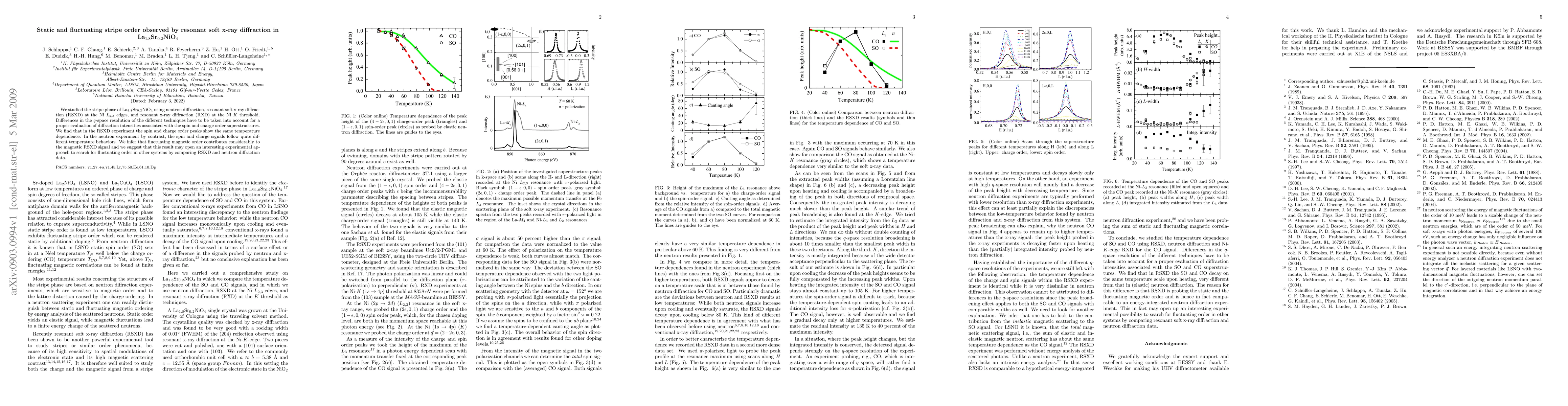 We studied the stripe phase of La1.8Sr0.2NiO4 using neutron diffraction, resonant soft x-ray diffraction (RSXD) at the Ni L2,3 edges, and resonant x-ray diffraction (RXD) at the Ni K threshold. Differences in the q-space resolution of the different techniques have to be taken into account for a proper evaluation of diffraction intensities associated with the spin and charge order superstructures. We find that in the RSXD experiment the spin and charge order peaks show the same temperature dependence. In the neutron experiment by contrast, the spin and charge signals follow quite different temperature behaviors. We infer that fluctuating magnetic order contributes considerably to the magnetic RSXD signal and we suggest that this result may open an interesting experimental approach to search for fluctuating order in other systems by comparing RSXD and neutron diffraction data.