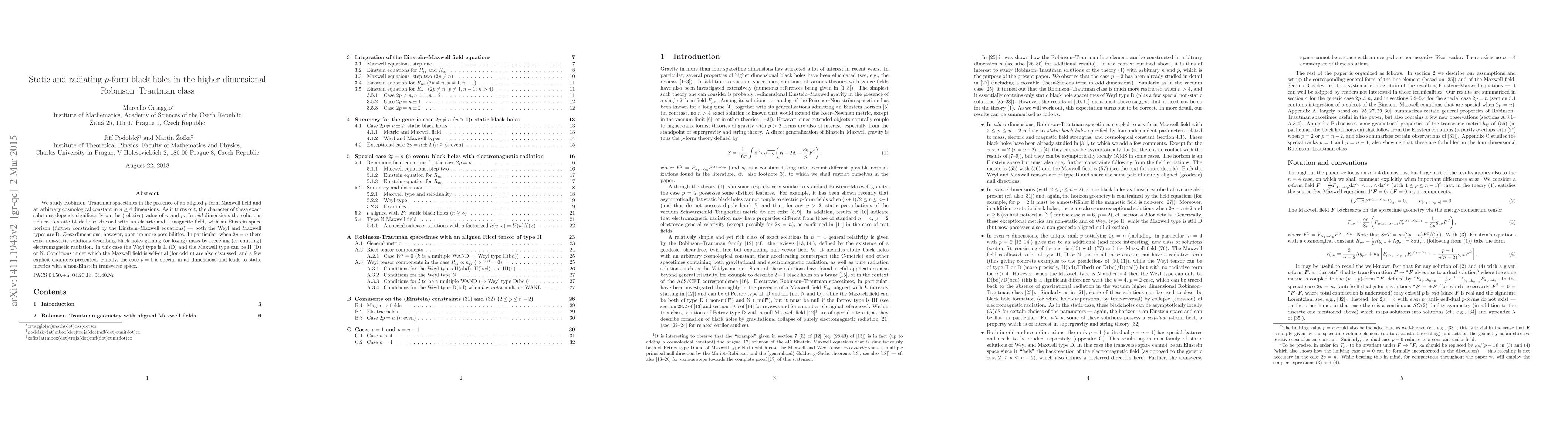 This paper investigates Robinson-Trautman spacetimes in higher dimensions with an aligned p-form Maxwell field, revealing static black holes in odd dimensions with Einstein horizon spaces and non-static radiating black holes in even dimensions. The study also explores self-dual Maxwell fields and special cases, particularly for p=1.