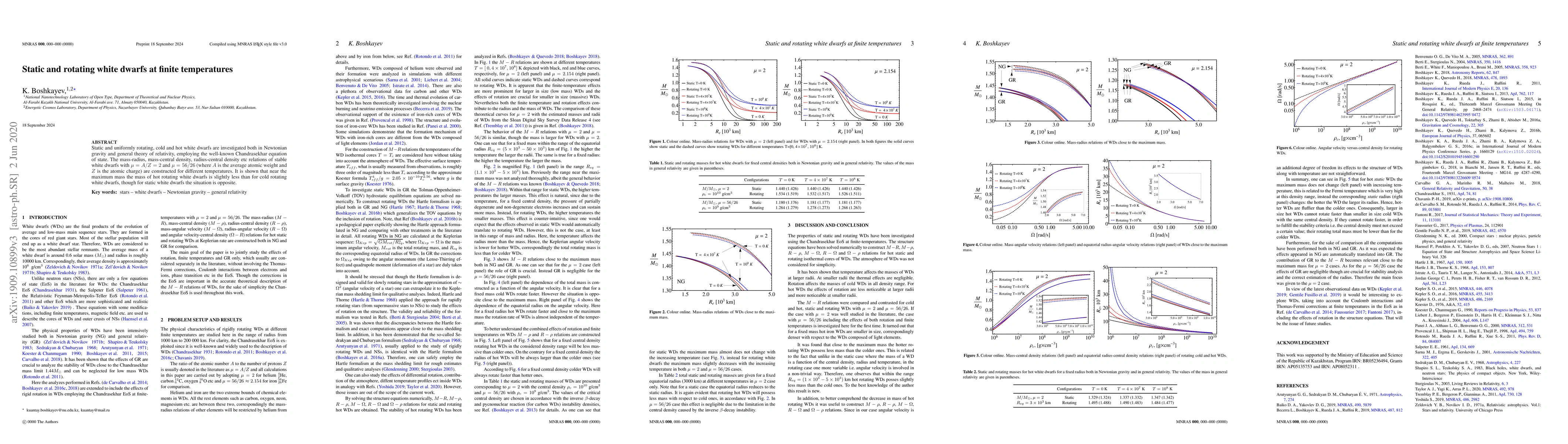 This paper investigates static and rotating white dwarfs under both Newtonian and relativistic frameworks, using the Chandrasekhar equation of state. It finds that hot rotating white dwarfs have slightly less mass near their maximum mass compared to cold rotating white dwarfs, while the opposite holds for static white dwarfs.