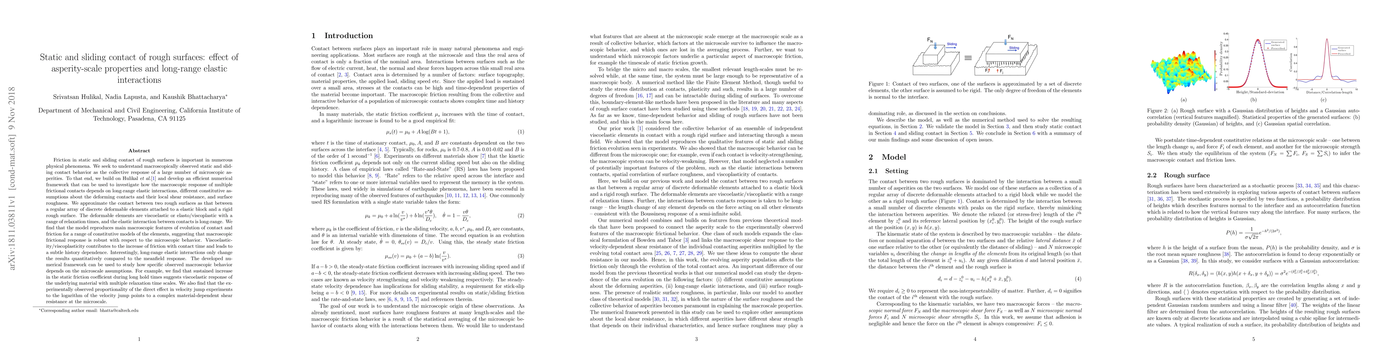 A study investigates how the properties of microscopic asperities and long-range elastic interactions affect friction in static and sliding contact of rough surfaces. It finds that macroscopic frictional response is robust despite microscopic behavior variations.