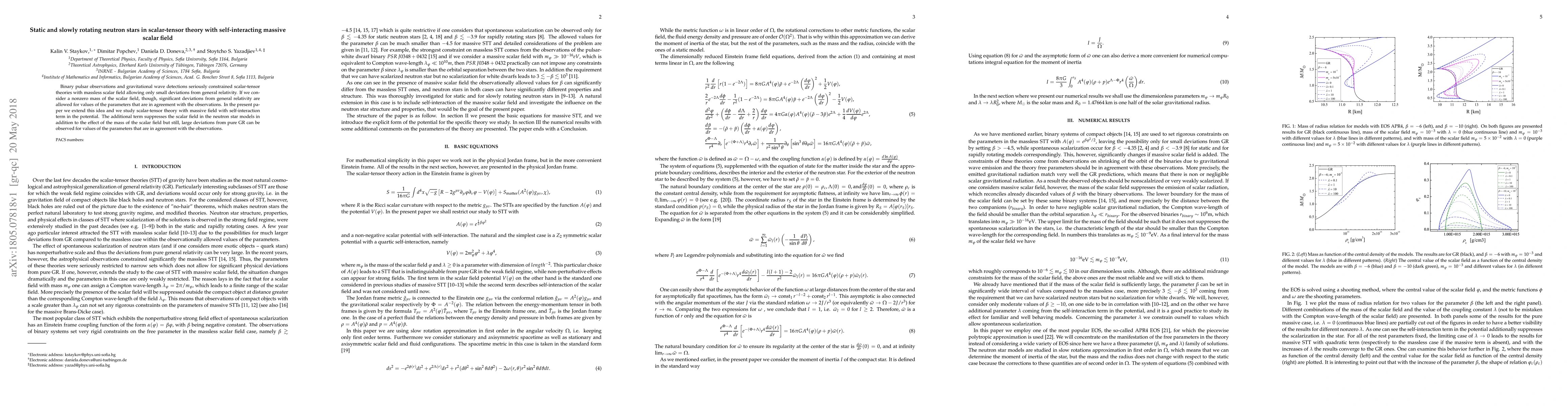 This paper explores static and slowly rotating neutron stars in a scalar-tensor theory featuring a massive scalar field with self-interaction. It finds that, despite suppression effects, the model allows for significant deviations from general relativity under parameter values consistent with observational data.