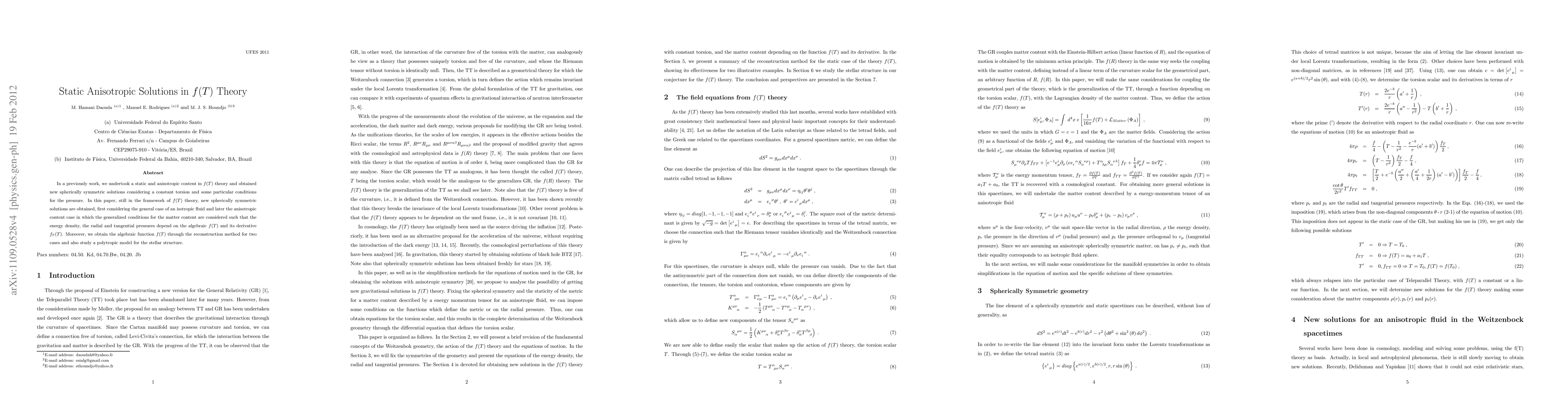 Researchers in f(T) theory develop new spherically symmetric solutions for both isotropic and anisotropic fluids, exploring the properties of energy density, pressure, and matter content under various conditions.