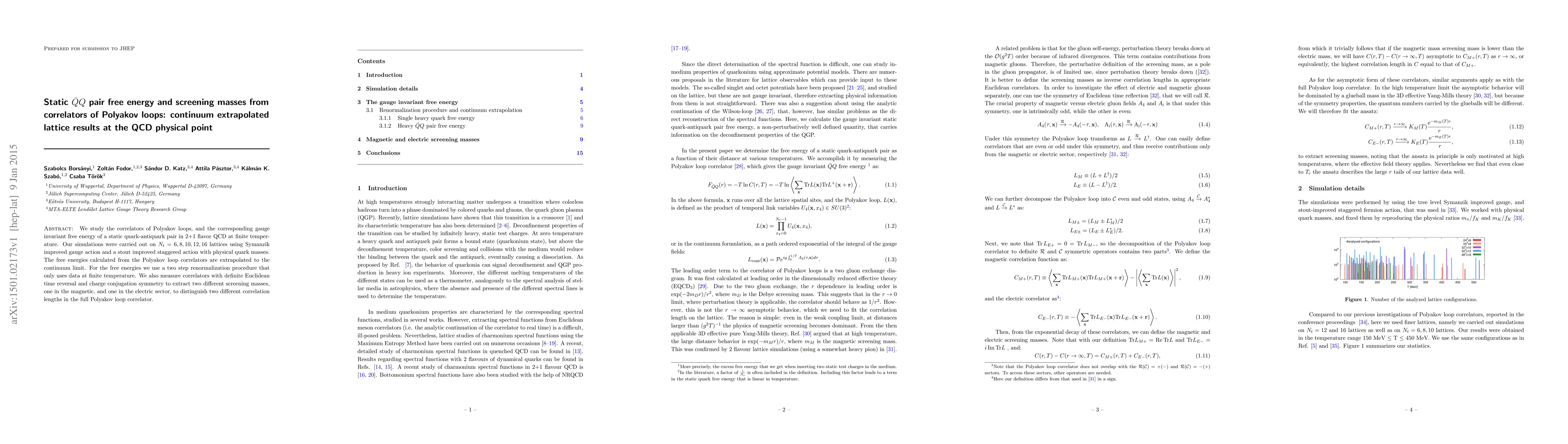 This paper investigates the free energy and screening masses of static quark-antiquark pairs in 2+1 flavor QCD at finite temperature using lattice simulations. Continuum extrapolated results from correlators of Polyakov loops reveal two distinct screening masses, one in the magnetic and one in the electric sector, providing insights into different correlation lengths.