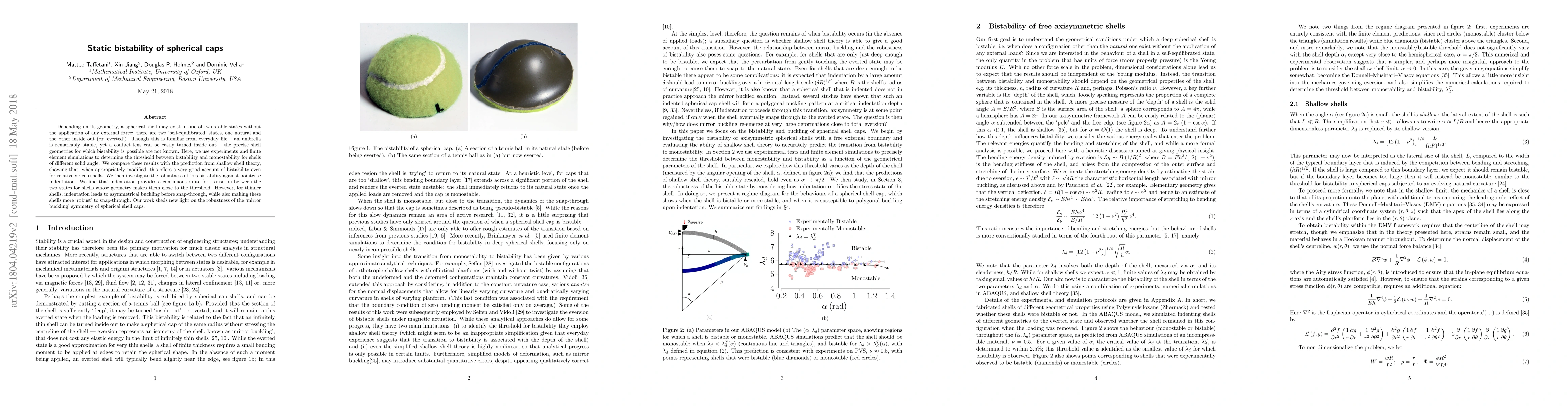 Depending on its geometry, a spherical shell may exist in one of two stable states without the application of any external force: there are two `self-equilibrated' states, one natural and the other inside out (or `everted'). Though this is familiar from everyday life -- an umbrella is remarkably stable, yet a contact lens can be easily turned inside out -- the precise shell geometries for which bistability is possible are not known. Here, we use experiments and finite element simulations to determine the threshold between bistability and monostability for shells of different solid angle. We compare these results with the prediction from shallow shell theory, showing that, when appropriately modified, this offers a very good account of bistability even for relatively deep shells. We then investigate the robustness of this bistability against pointwise indentation. We find that indentation provides a continuous route for transition between the two states for shells whose geometry makes them close to the threshold. However, for thinner shells, indentation leads to asymmetrical buckling before snap-through, while also making these shells more `robust' to snap-through. Our work sheds new light on the robustness of the `mirror buckling' symmetry of spherical shell caps.