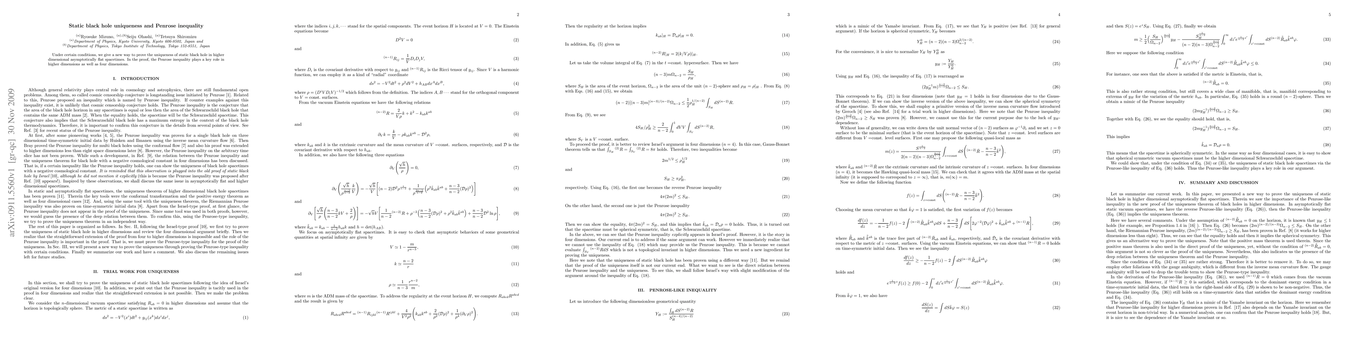 This paper presents a novel method to prove the uniqueness of static black holes in higher-dimensional asymptotically flat spacetimes, emphasizing the crucial role of the Penrose inequality in both higher and four dimensions.