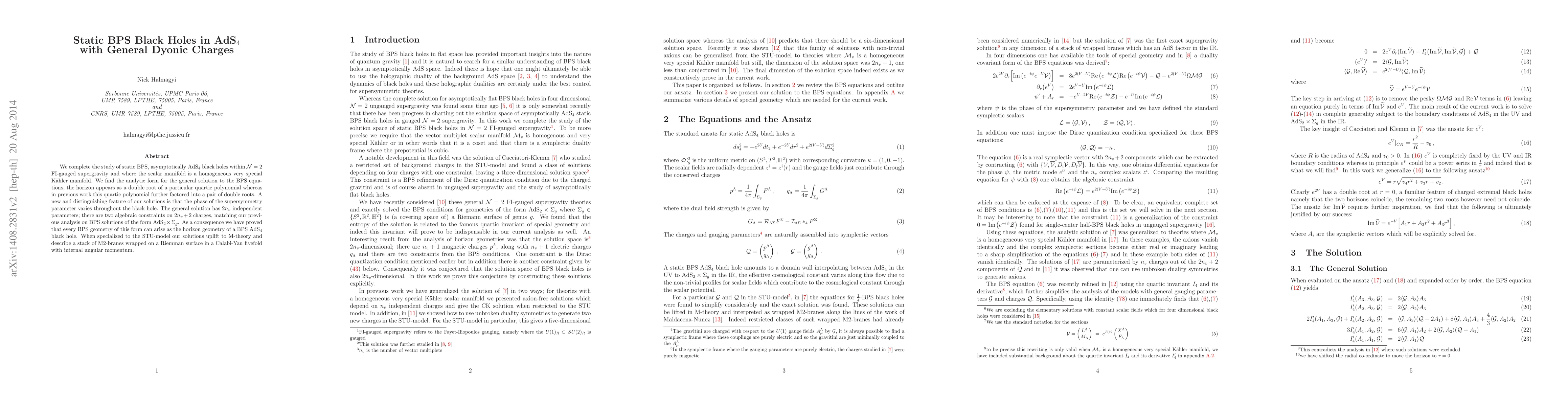 We complete the study of static BPS, asymptotically AdS$_4$ black holes within N=2 FI-gauged supergravity and where the scalar manifold is a homogeneous very special Kahler manifold. We find the analytic form for the general solution to the BPS equations, the horizon appears as a double root of a particular quartic polynomial whereas in previous work this quartic polynomial further factored into a pair of double roots. A new and distinguishing feature of our solutions is that the phase of the supersymmetry parameter varies throughout the black hole. The general solution has $2n_v$ independent parameters; there are two algebraic constraints on $2n_v+2$ charges, matching our previous analysis on BPS solutions of the form $AdS_2\times \Sigma_g$. As a consequence we have proved that every BPS geometry of this form can arise as the horizon geometry of a BPS AdS$_4$ black hole. When specialized to the STU-model our solutions uplift to M-theory and describe a stack of M2-branes wrapped on a Riemman surface in a Calabi-Yau fivefold with internal angular momentum.
