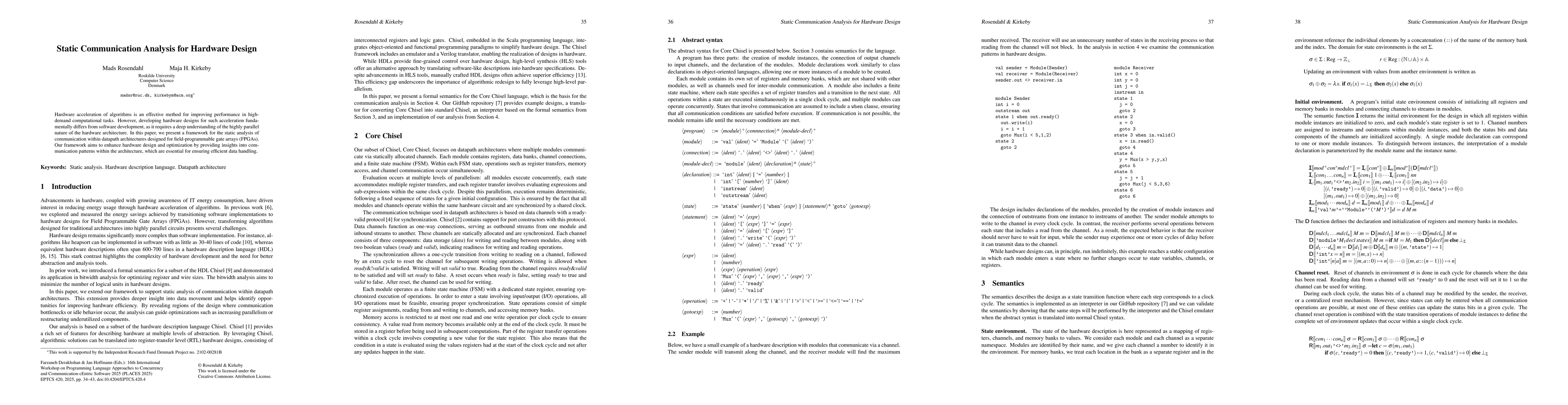 This work is novel in its focus on static communication analysis specifically for FPGA datapath architectures, providing unique insights for hardware design optimization.