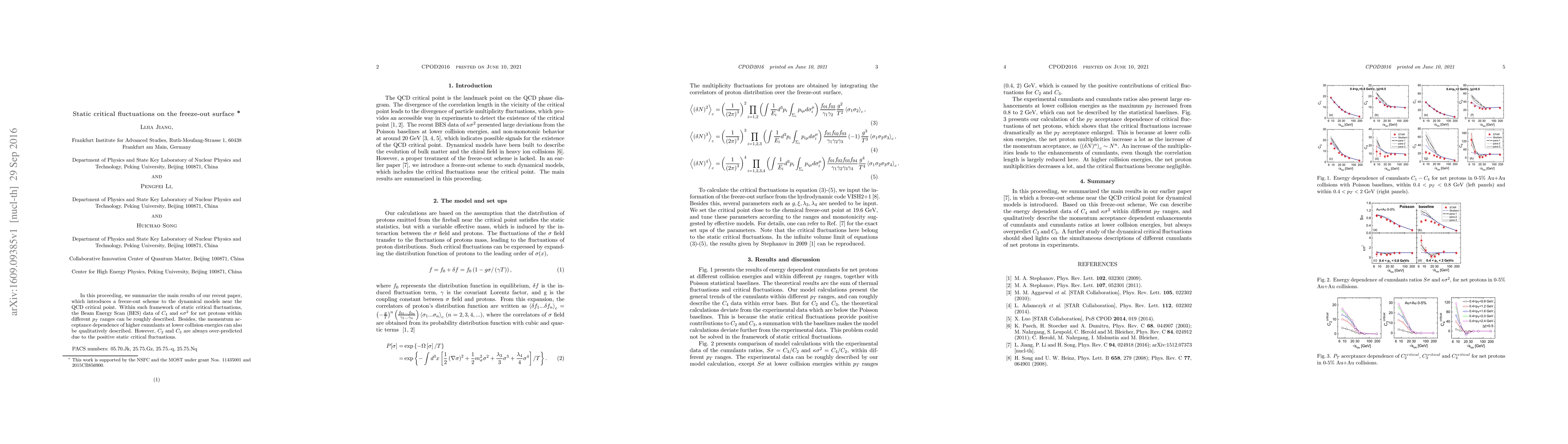 In this proceeding, we summarize the main results of our recent paper, which introduces a freeze-out scheme to the dynamical models near the QCD critical point. Within such framework of static critical fluctuations, the Beam Energy Scan (BES) data of $C_4$ and $\kappa \sigma^2$ for net protons within different $p_T$ ranges can be roughly described. Besides, the momentum acceptance dependence of higher cumulants at lower collision energies can also be qualitatively described. However, $C_2$ and $C_3$ are always over-predicted due to the positive static critical fluctuations.