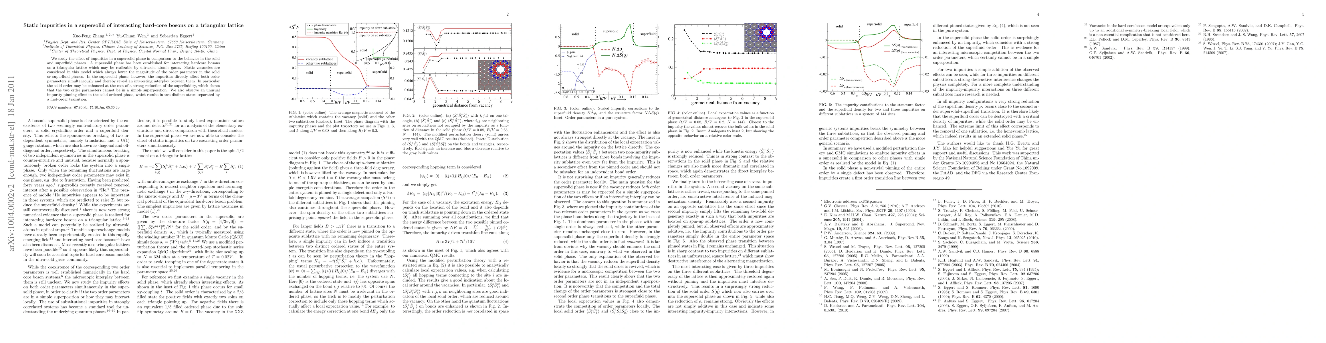 Researchers studied how impurities affect a supersolid phase of interacting hard-core bosons on a triangular lattice, finding that impurities enhance solid order at the cost of superfluidity and cause unusual state separation.