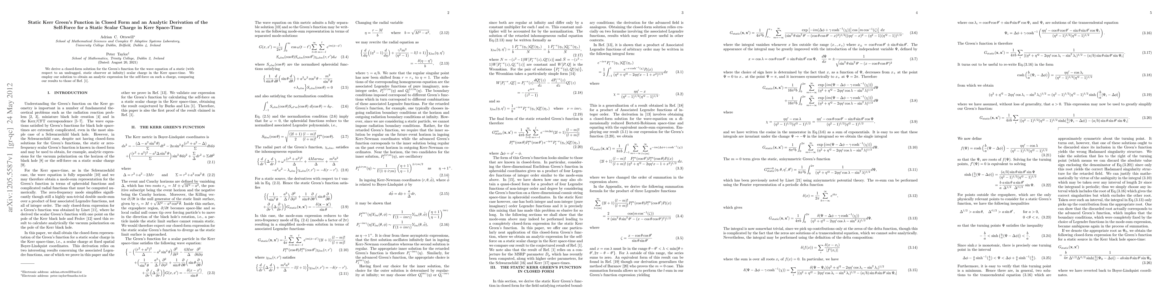 This paper presents a closed-form solution for the Green's function of a static scalar charge in Kerr space-time and derives an analytic expression for the self-force acting on the charge, contrasting it with previous mode-sum regularization methods.