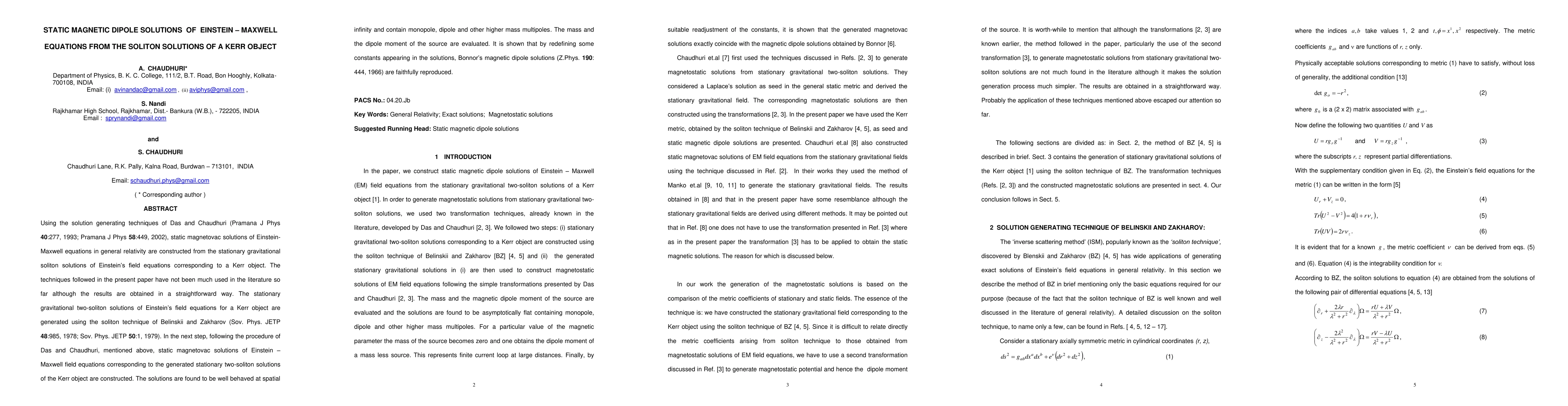 This paper explores the derivation of static magnetic dipole solutions from the Einstein-Maxwell equations by utilizing soliton solutions of a Kerr object, providing a novel approach to understanding magnetic fields in the context of general relativity.