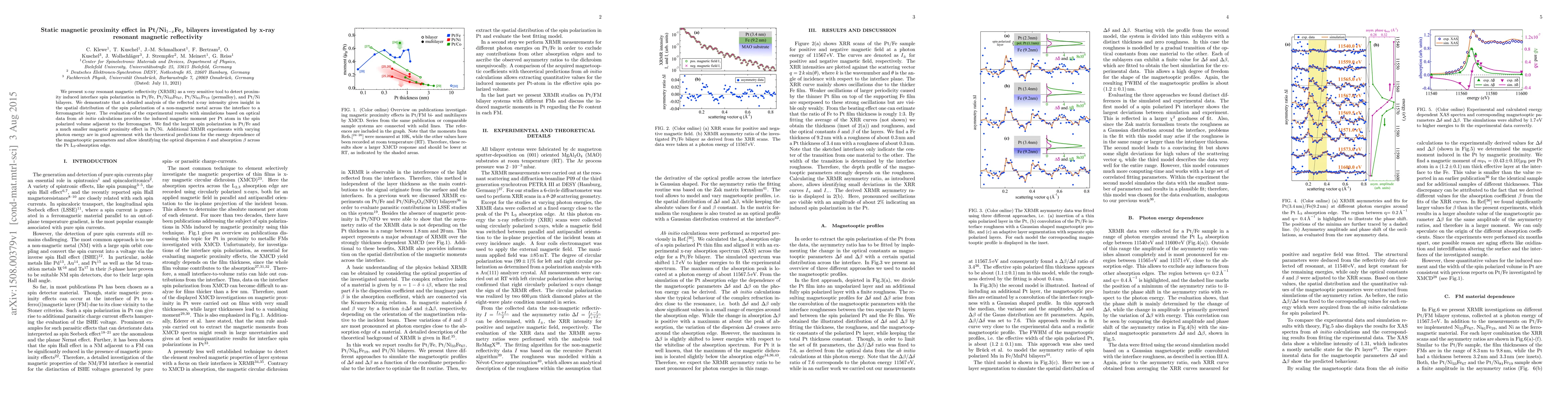 We present x-ray resonant magnetic reflectivity (XRMR) as a very sensitive tool to detect proximity induced interface spin polarization in Pt/Fe, Pt/Ni$_{33}$Fe$_{67}$, Pt/Ni$_{81}$Fe$_{19}$ (permalloy), and Pt/Ni bilayers. We demonstrate that a detailed analysis of the reflected x-ray intensity gives insight in the spatial distribution of the spin polarization of a non-magnetic metal across the interface to a ferromagnetic layer. The evaluation of the experimental results with simulations based on optical data from ab initio calculations provides the induced magnetic moment per Pt atom in the spin polarized volume adjacent to the ferromagnet. We find the largest spin polarization in Pt/Fe and a much smaller magnetic proximity effect in Pt/Ni. Additional XRMR experiments with varying photon energy are in good agreement with the theoretical predictions for the energy dependence of the magnetooptic parameters and allow identifying the optical dispersion $\delta$ and absorption $\beta$ across the Pt L3-absorption edge.