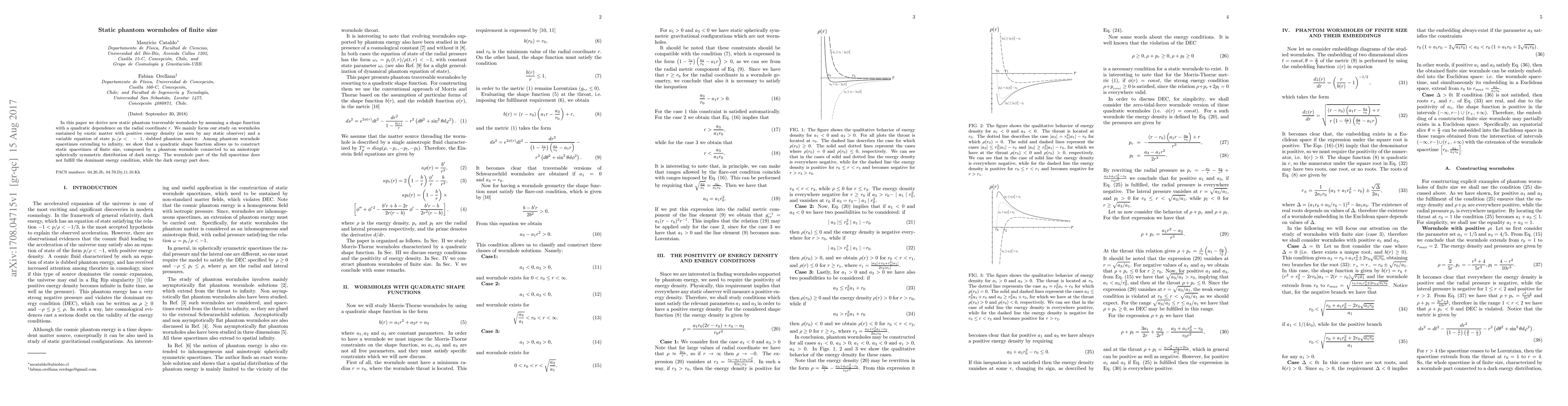In this paper we derive new static phantom traversable wormholes by assuming a shape function with a quadratic dependence on the radial coordinate r. We mainly focus our study on wormholes sustained by exotic matter with positive energy density (as seen by any static observer) and a variable equation of state $p_r/\rho<-1$, dubbed phantom matter. Among phantom wormhole spacetimes extending to infinity, we show that a quadratic shape function allows us to construct static spacetimes of finite size, composed by a phantom wormhole connected to an anisotropic spherically symmetric distribution of dark energy. The wormhole part of the full spacetime does not fulfill the dominant energy condition, while the dark energy part does.