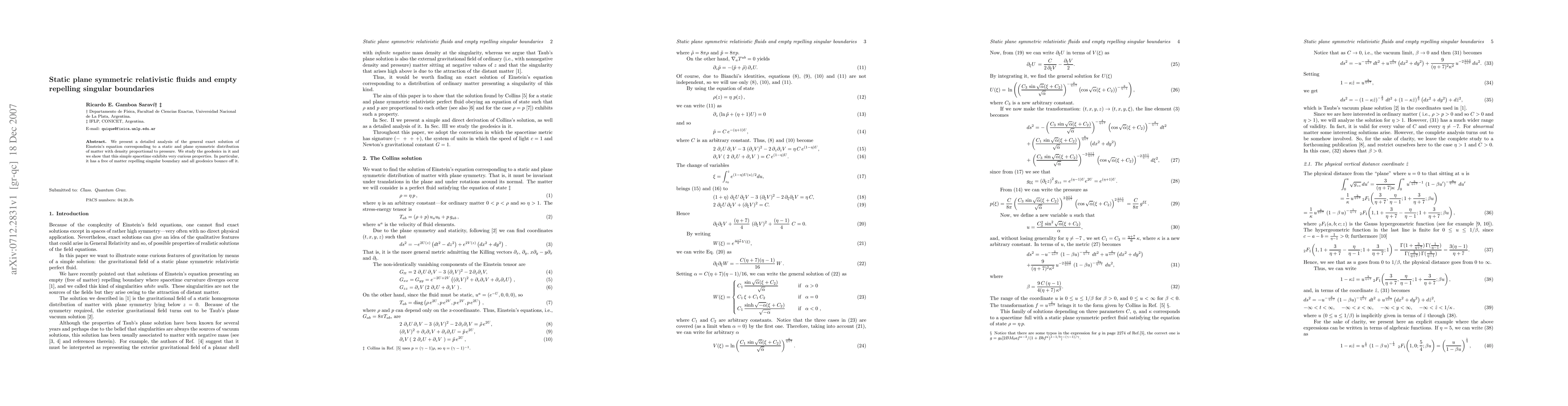 We present a detailed analysis of the general exact solution of Einstein's equation corresponding to a static and plane symmetric distribution of matter with density proportional to pressure. We study the geodesics in it and we show that this simple spacetime exhibits very curious properties. In particular, it has a free of matter repelling singular boundary and all geodesics bounce off it.