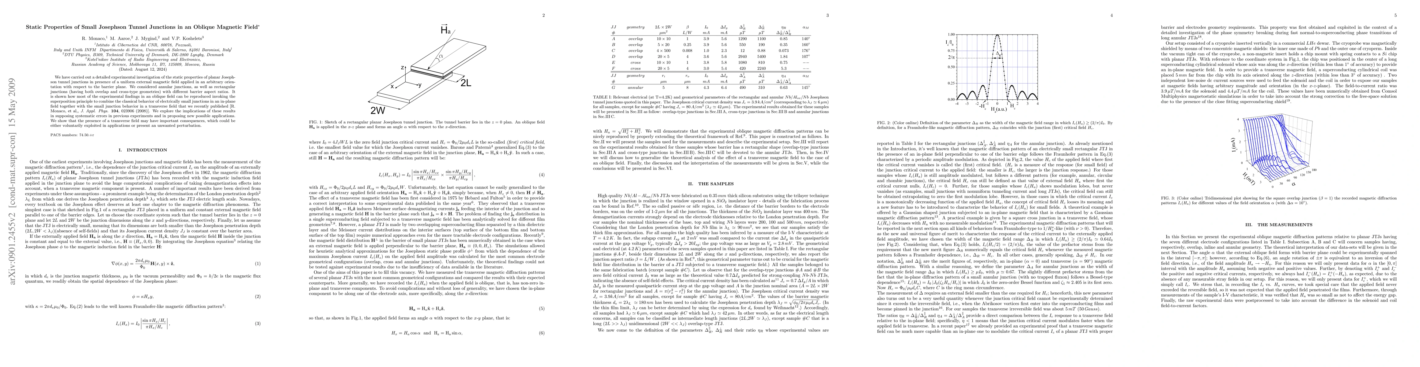 This paper investigates the static properties of Josephson tunnel junctions under an oblique magnetic field, demonstrating that the observed behavior can be explained by combining classical in-plane and transverse field effects. The study highlights potential implications for correcting past experimental errors and suggests new applications or considerations for transverse field influences.