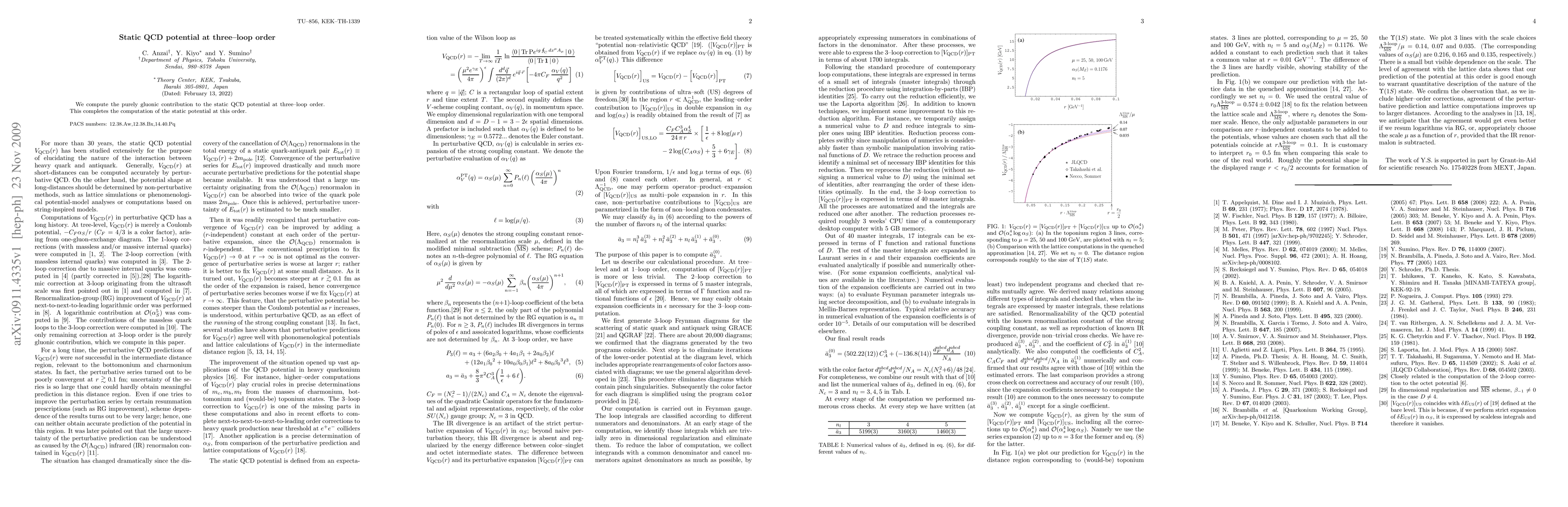 Researchers calculated the static QCD potential at three-loop order, completing its computation, and found the purely gluonic contribution to the potential.