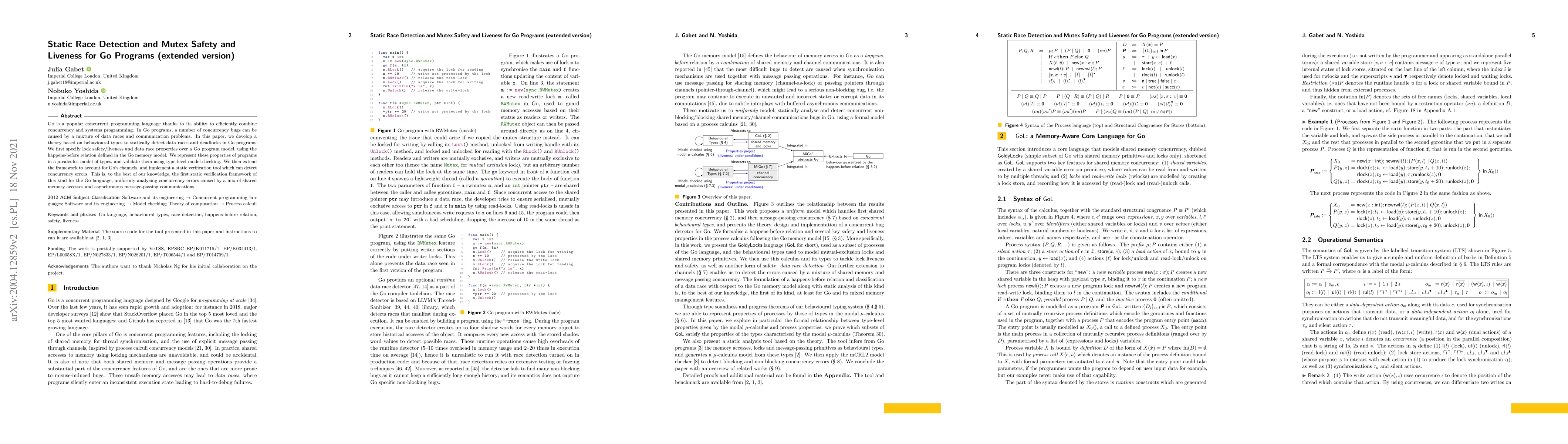 This paper proposes a static verification framework for Go programs that detects data races and deadlocks using behavioral types and $\mu$-calculus, offering the first tool of its kind to uniformly analyze concurrency errors from shared memory and channel communications. The framework models lock safety and liveness and employs type-level model-checking for validation.