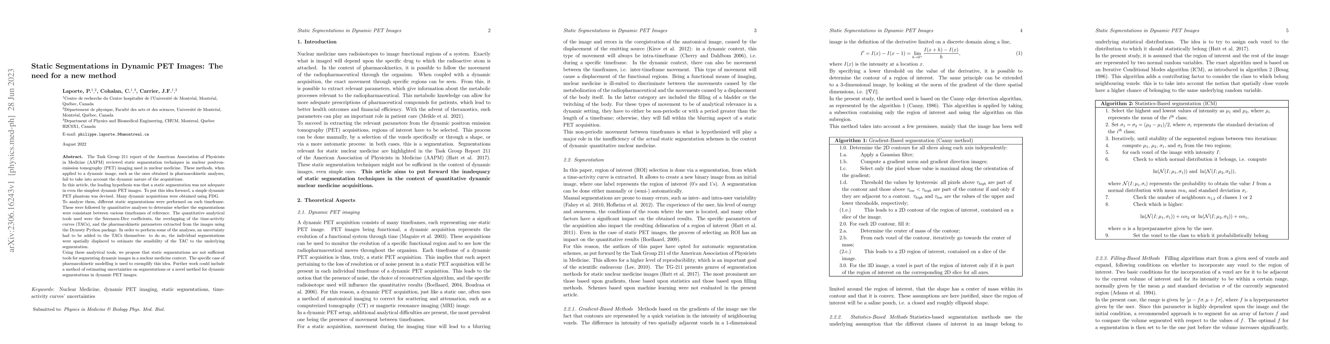 This research highlights the importance of considering dynamic acquisitions in PET image segmentation.
