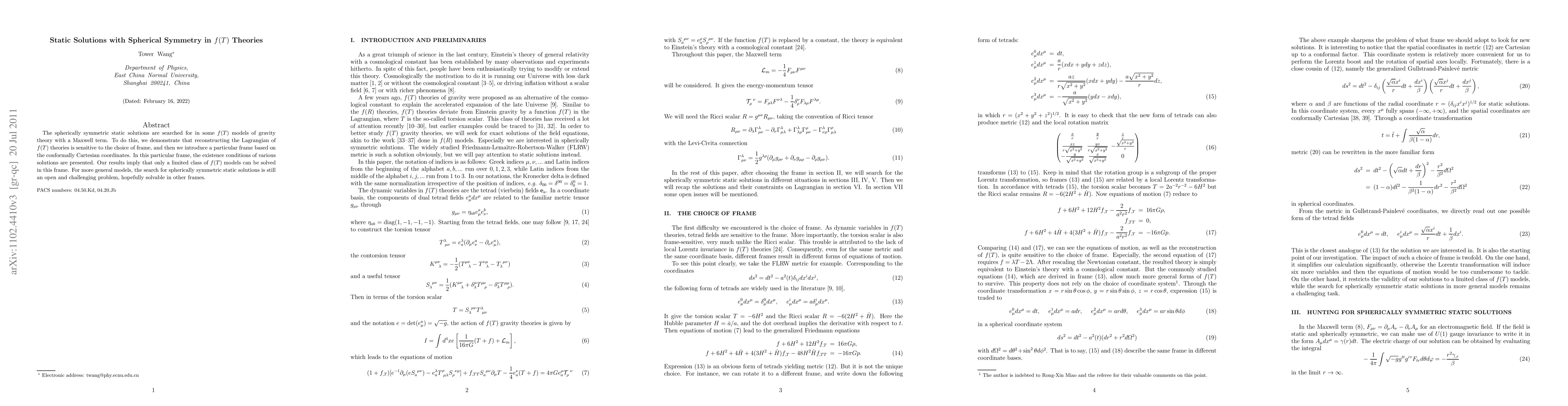 The spherically symmetric static solutions are searched for in some f(T) models of gravity theory with a Maxwell term. To do this, we demonstrate that reconstructing the Lagrangian of f(T) theories is sensitive to the choice of frame, and then we introduce a particular frame based on the conformally Cartesian coordinates. In this particular frame, the existence conditions of various solutions are presented. Our results imply that only a limited class of f(T) models can be solved in this frame. For more general models, the search for spherically symmetric static solutions is still an open and challenging problem, hopefully solvable in other frames.